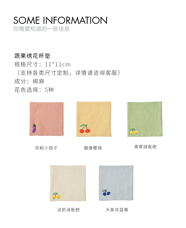 蔬果绣花布艺咖啡杯垫创意北欧隔热防烫垫