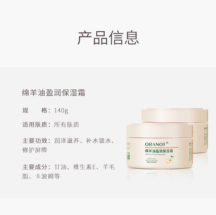 【拍1发3】奥兰诺澳洲 绵羊盈润保湿霜140g