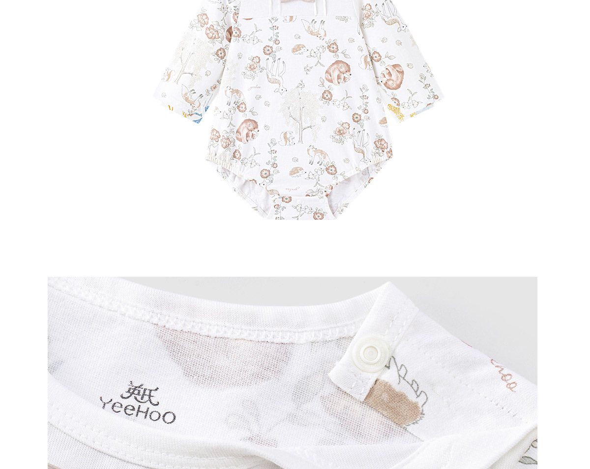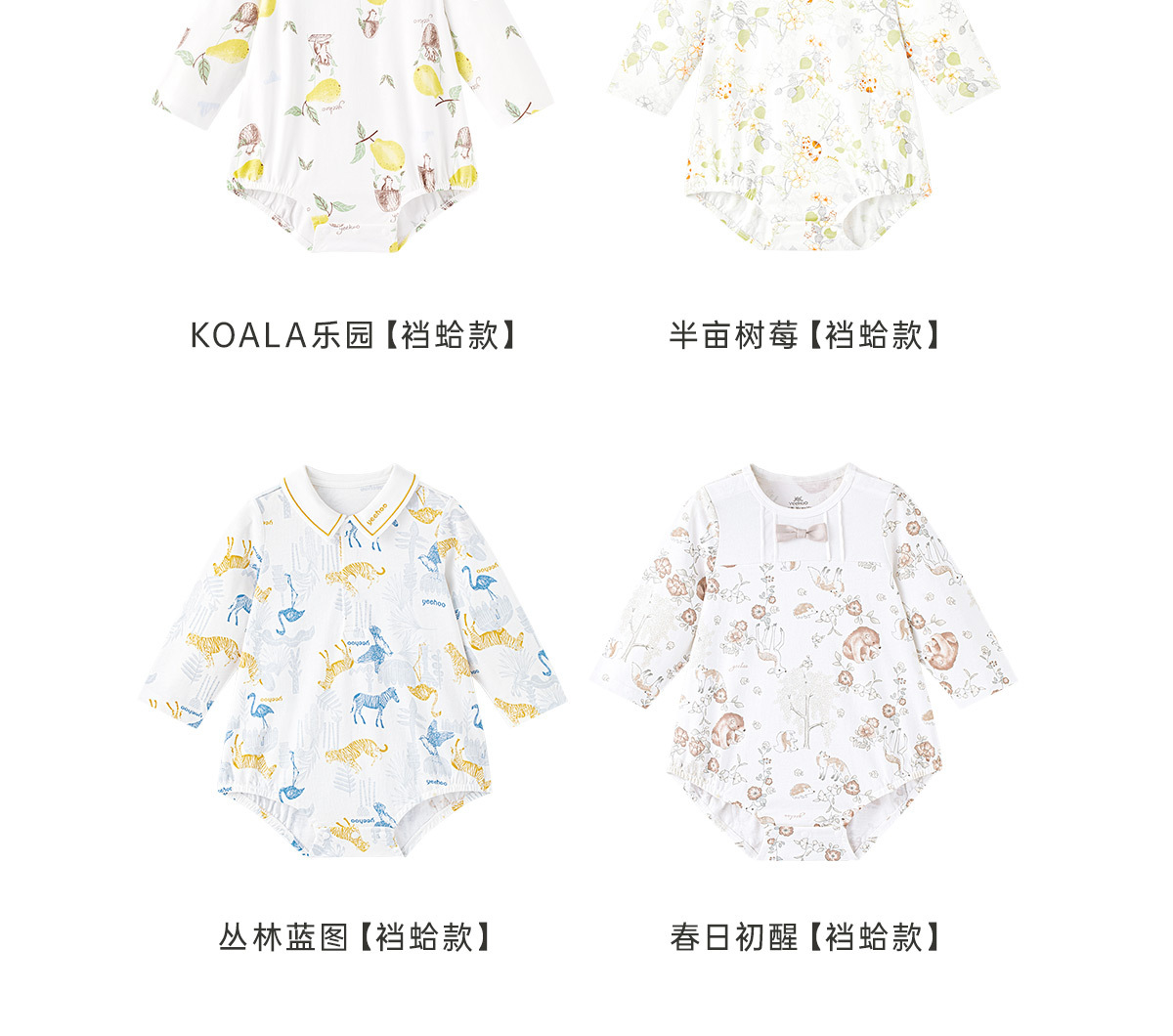 英氏【乳木果】宝宝抗菌哈衣秋新生儿纯棉婴儿衣服四季连体衣5A抗菌