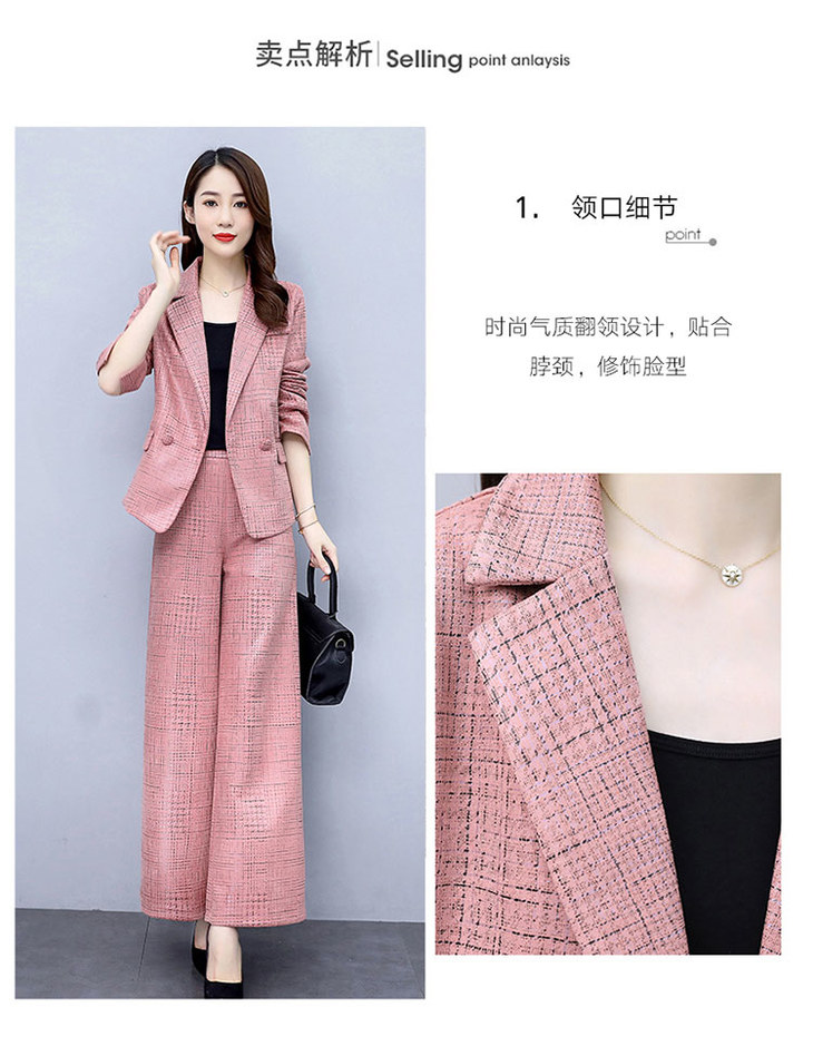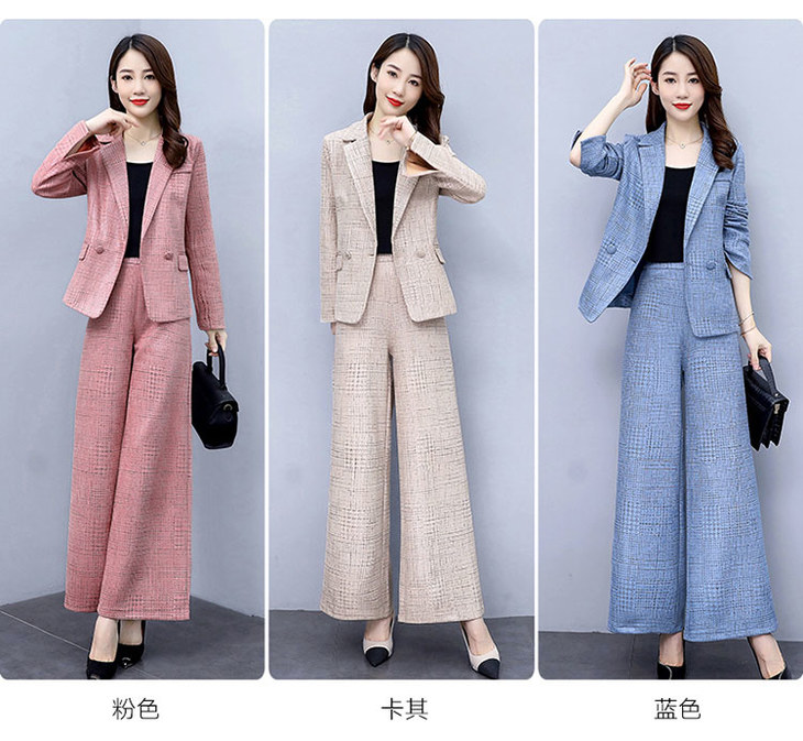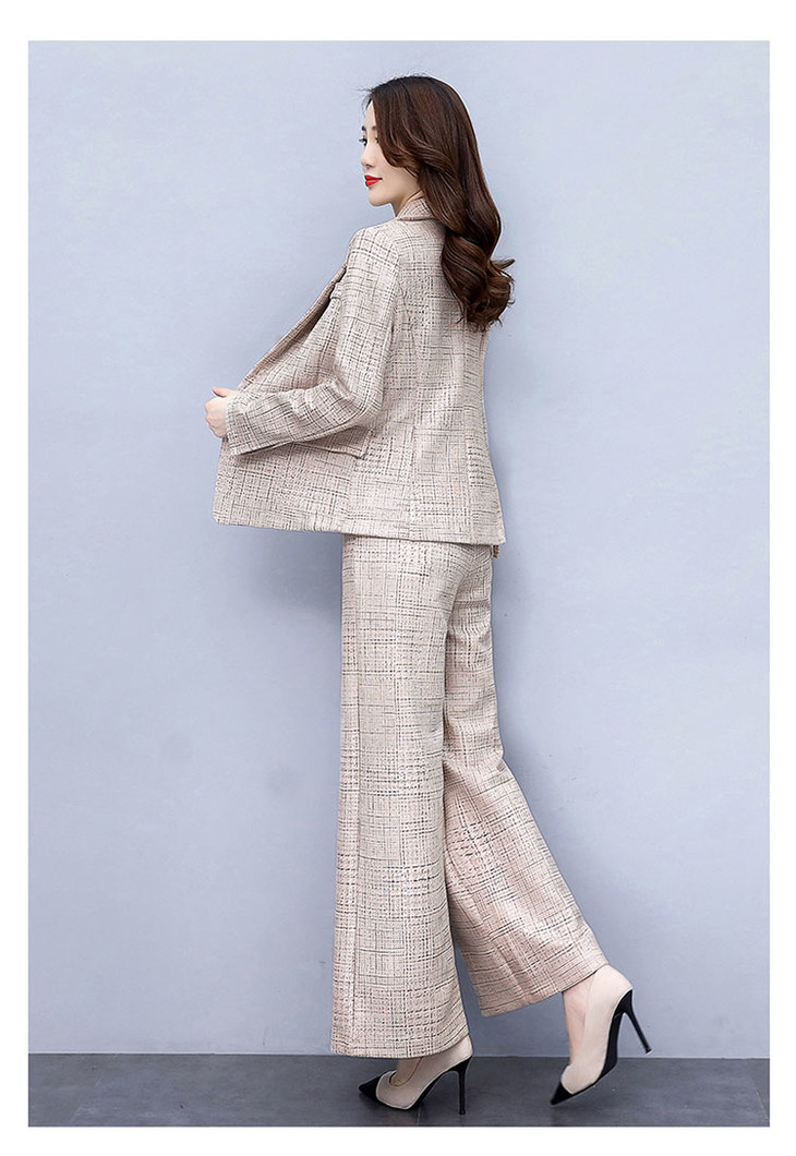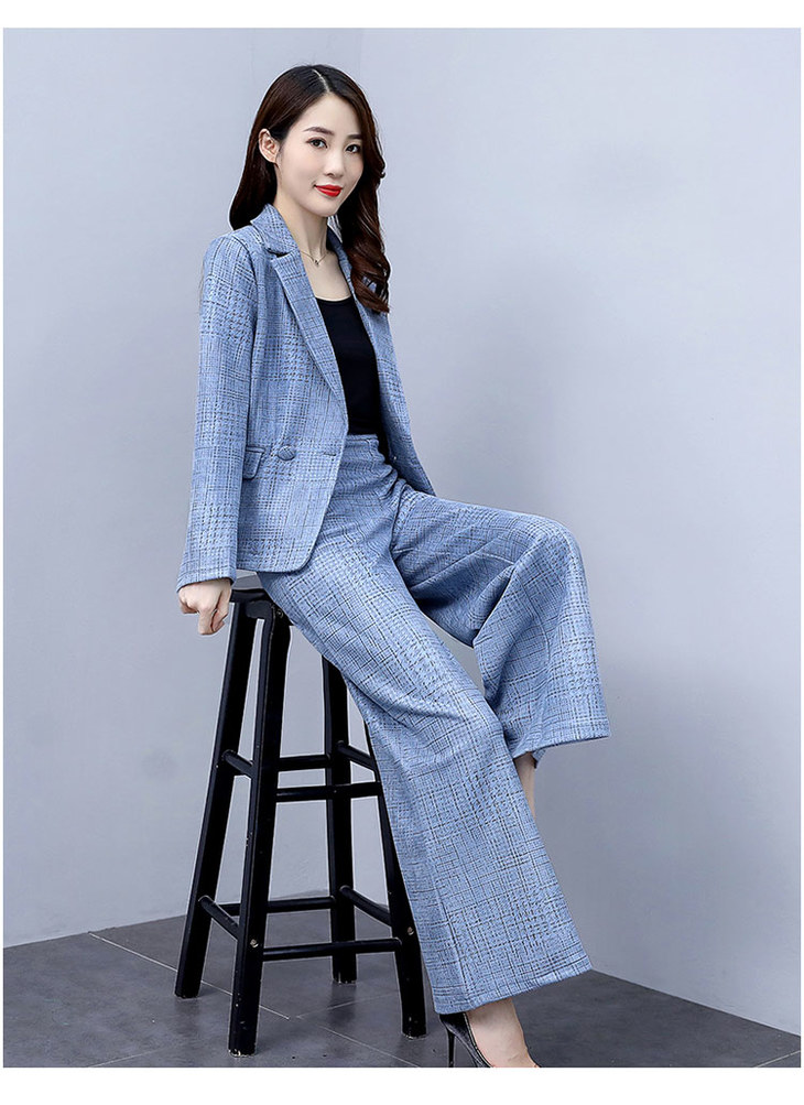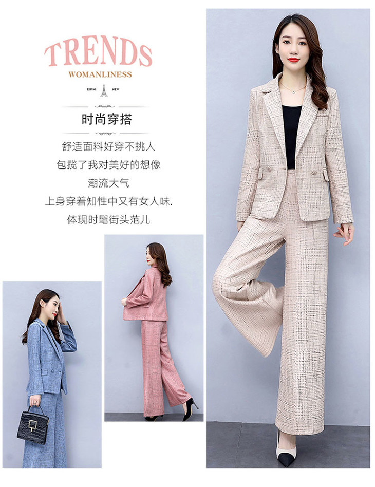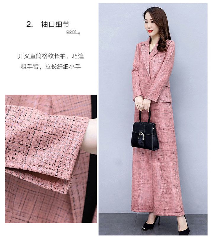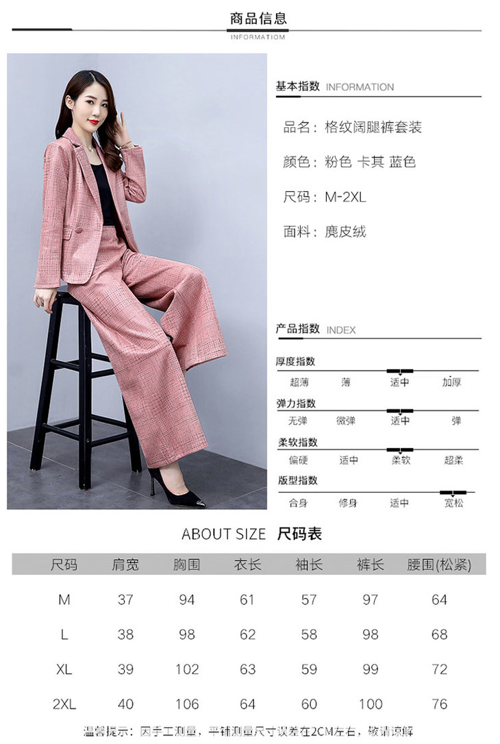 WZNH-RSLD8508简约舒适时尚格纹阔腿裤两件套