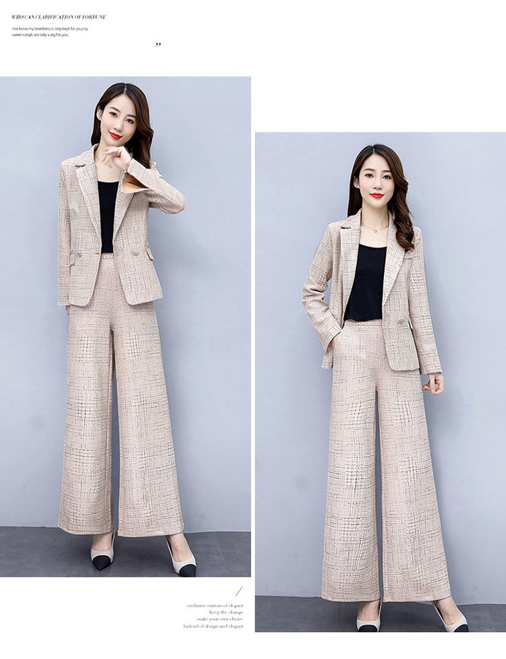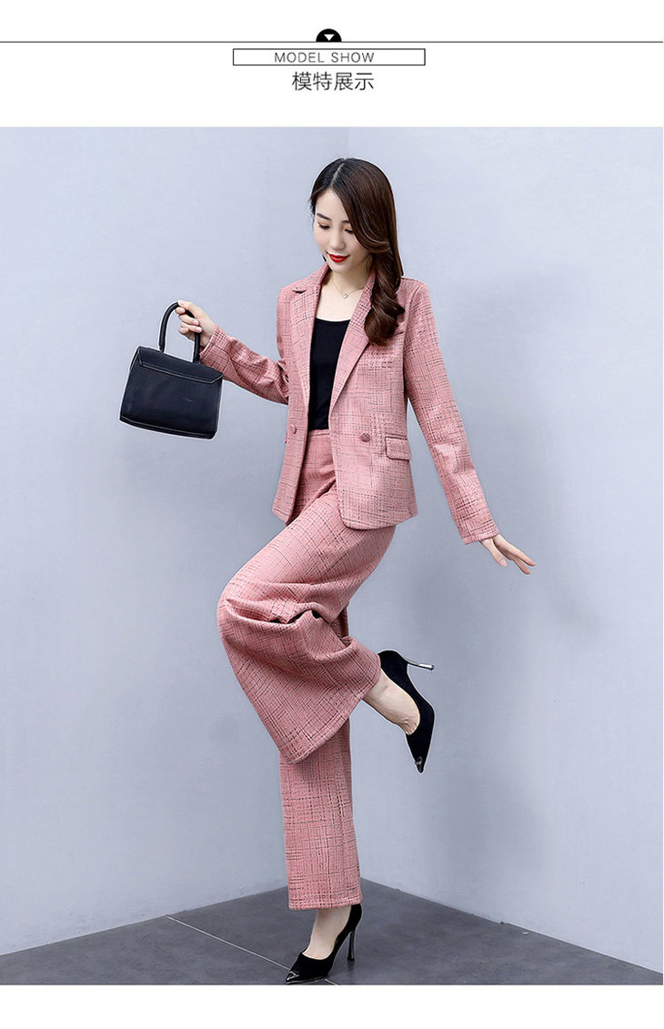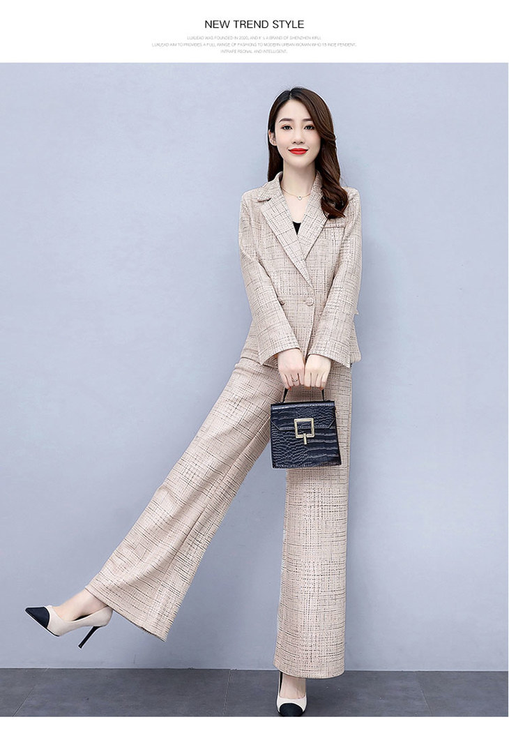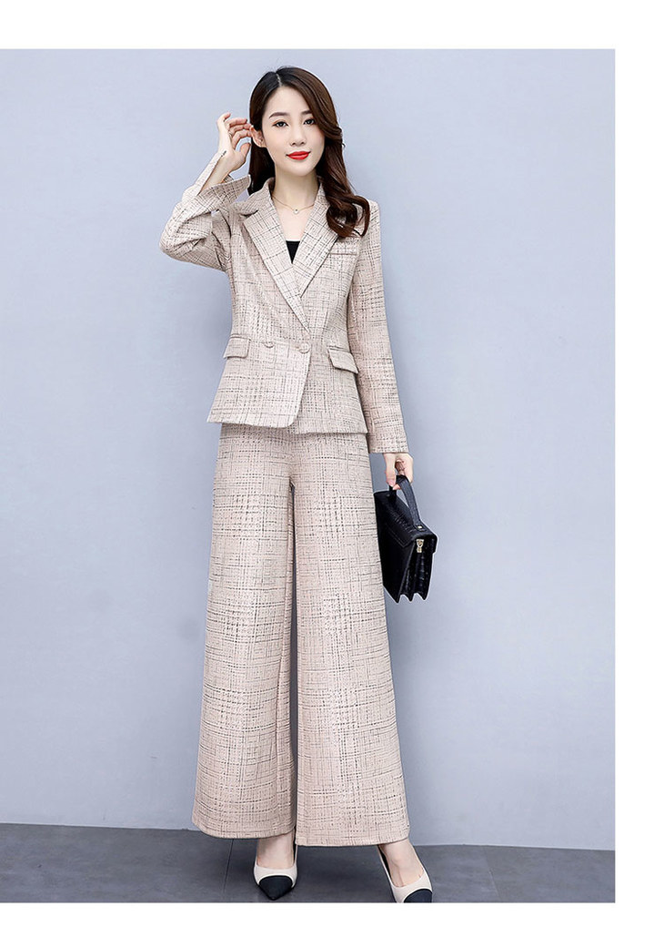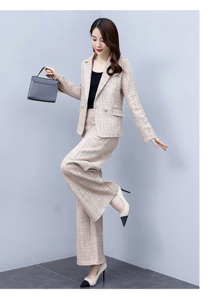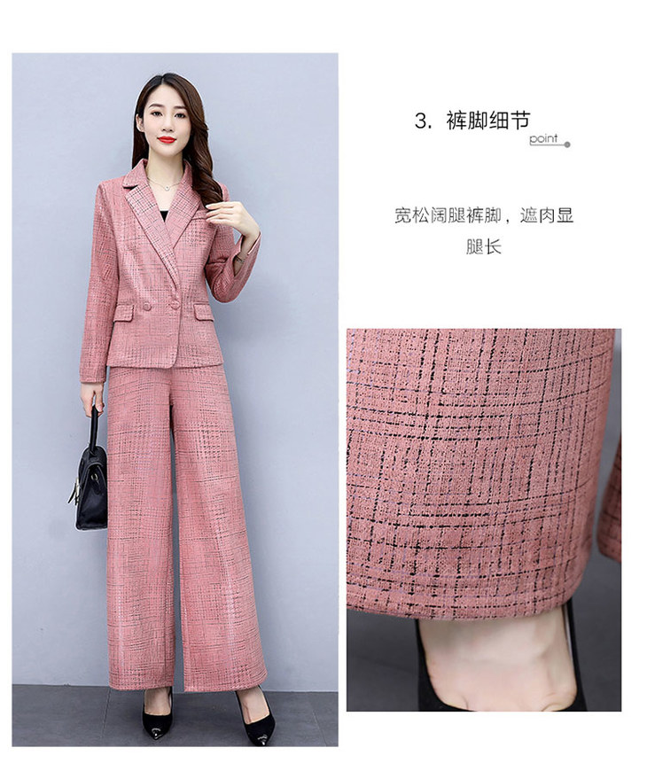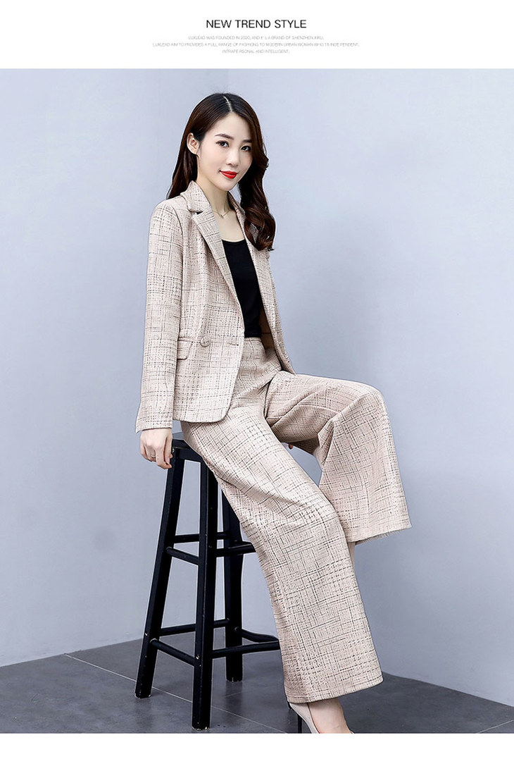 WZNH-RSLD8508简约舒适时尚格纹阔腿裤两件套