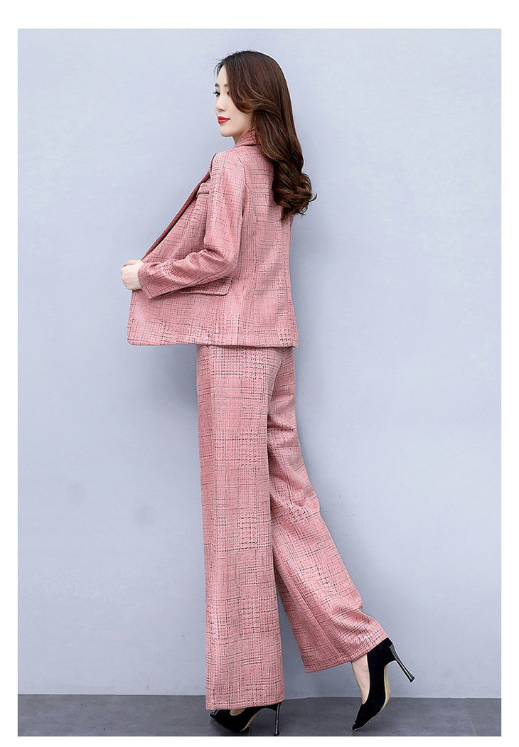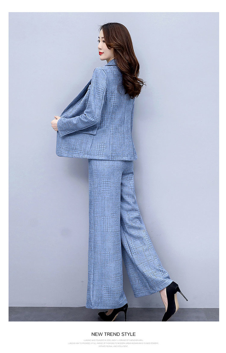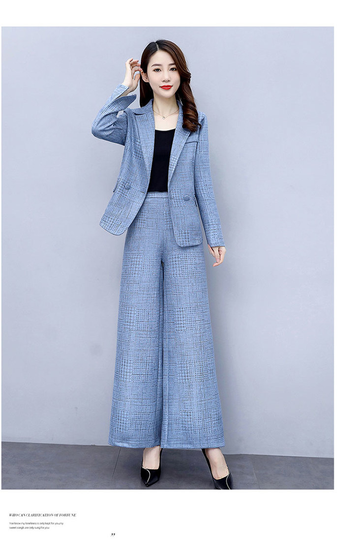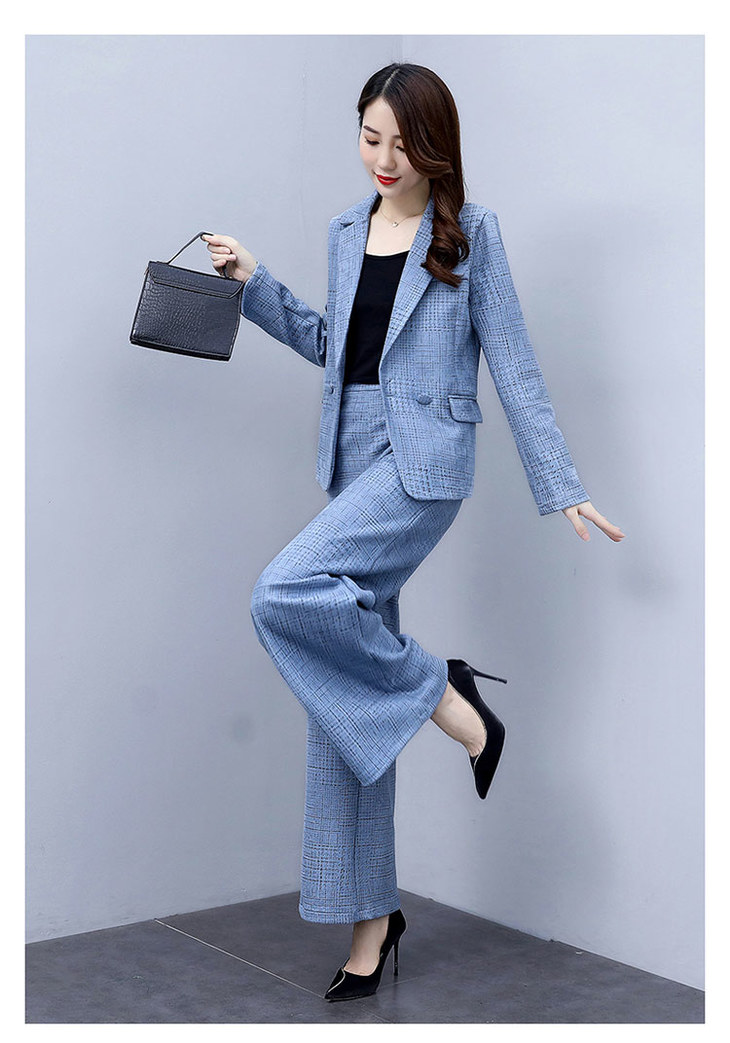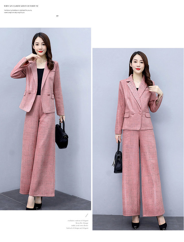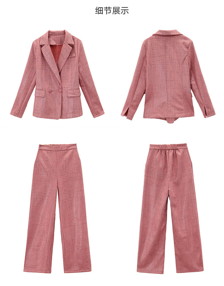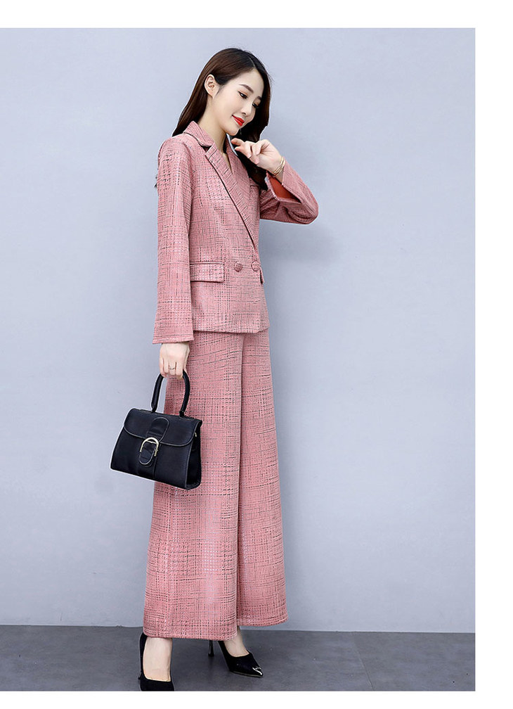 WZNH-RSLD8508简约舒适时尚格纹阔腿裤两件套