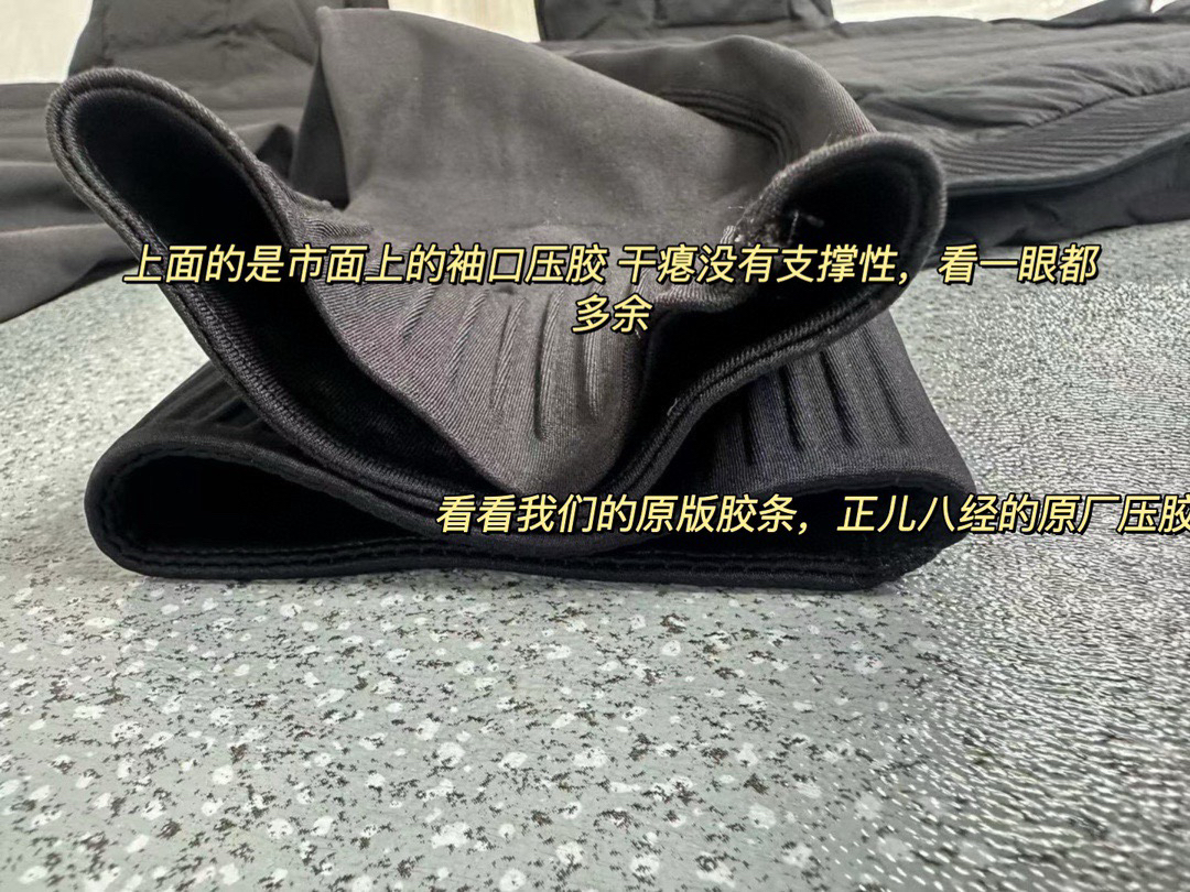袖口压胶工艺也不对!很干瘪,包括整个内里的胶条也是烂的一塌糊涂