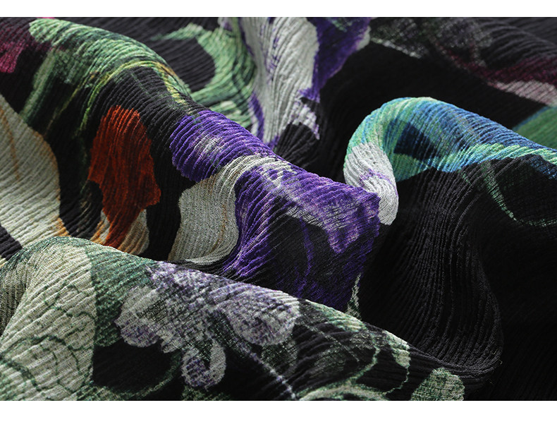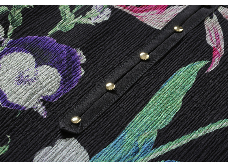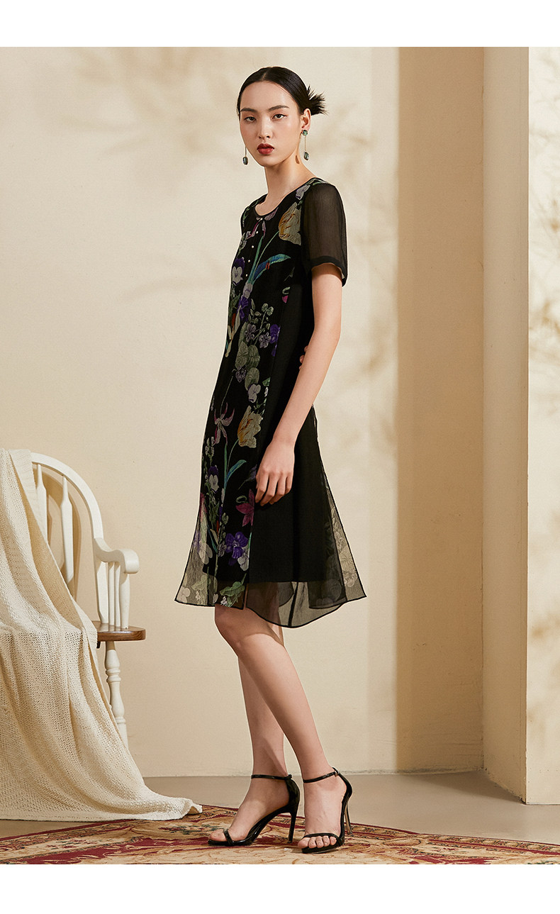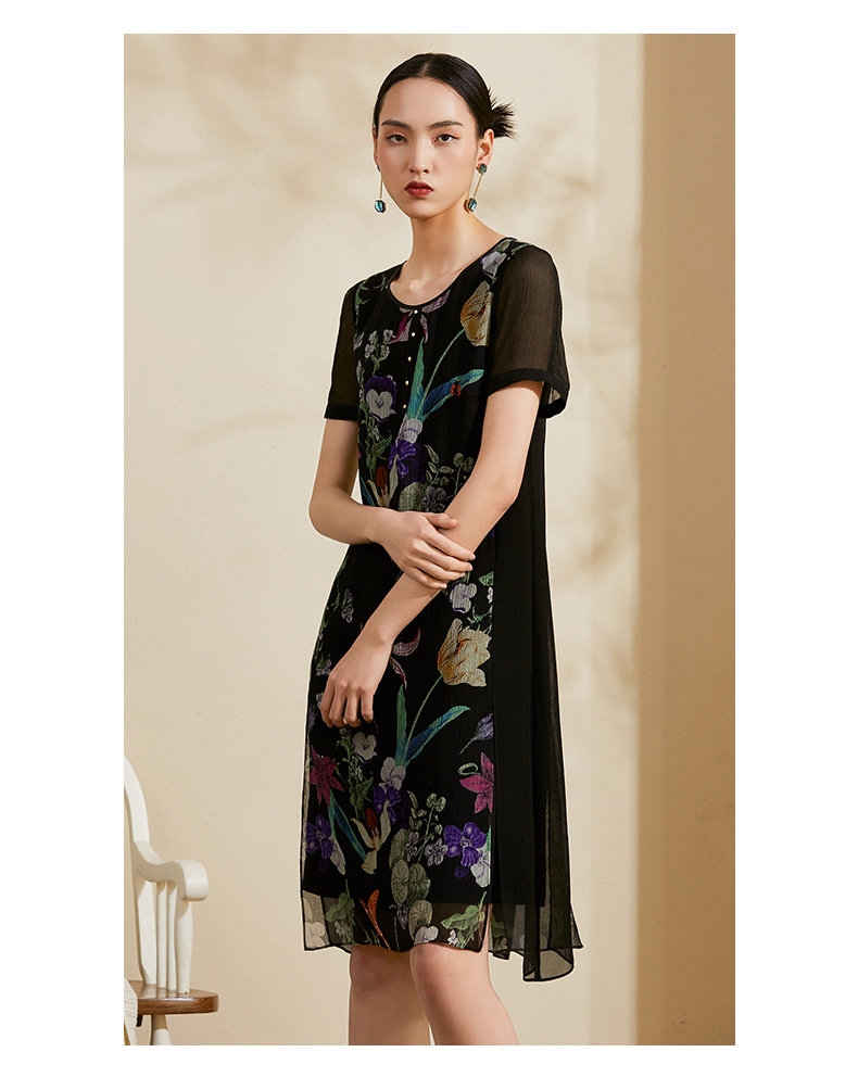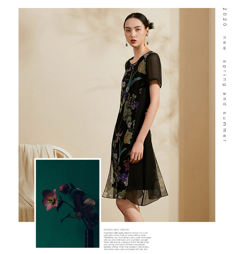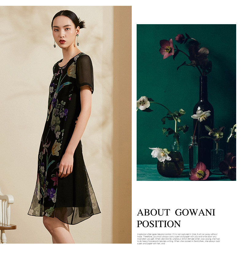 乔万尼真丝桑蚕丝连衣裙夏季新款气质时尚花鸟图中长裙子ES2E143