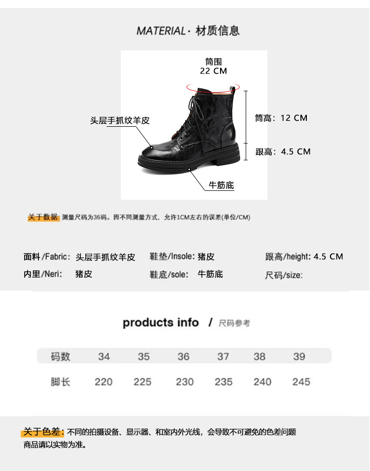 鞋面材质:头层手抓纹羊皮