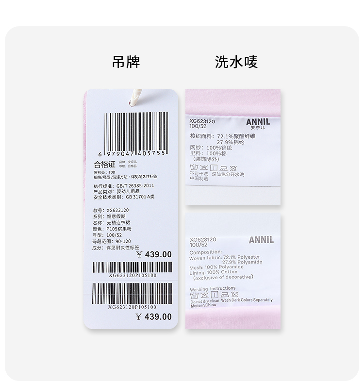 【实体店同款】女童无袖连衣裙夏季新款安奈儿童装XG623120