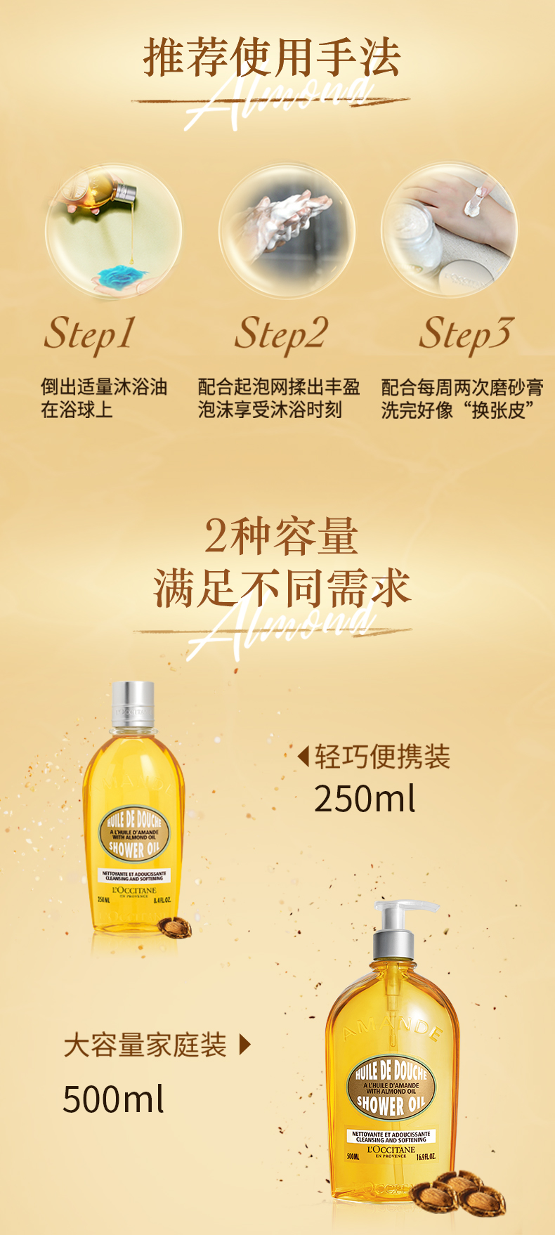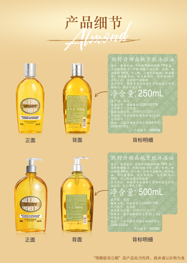 【精选包邮】正品欧舒丹250ml/500ml 甜扁桃沐浴油 补水保湿清洁滋润香体沐浴#