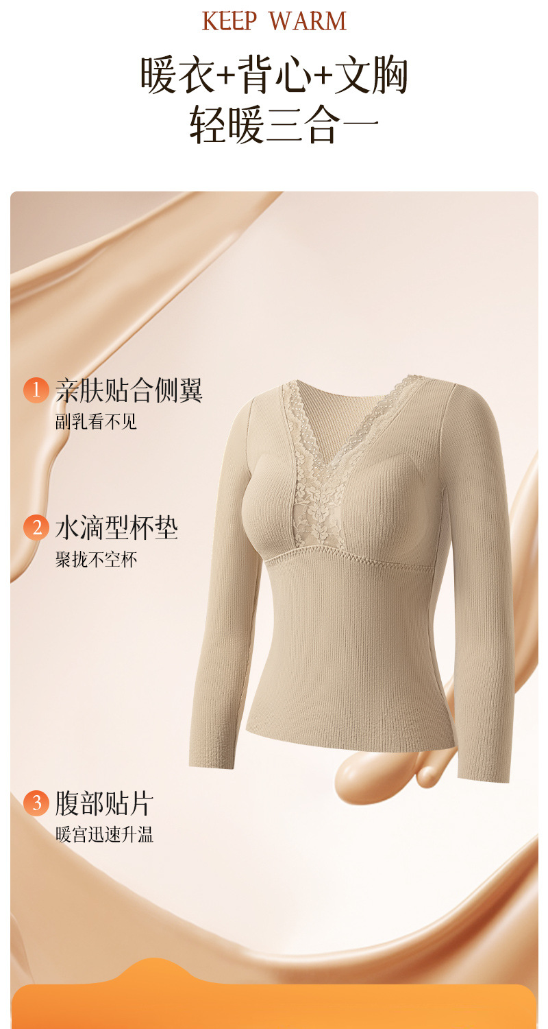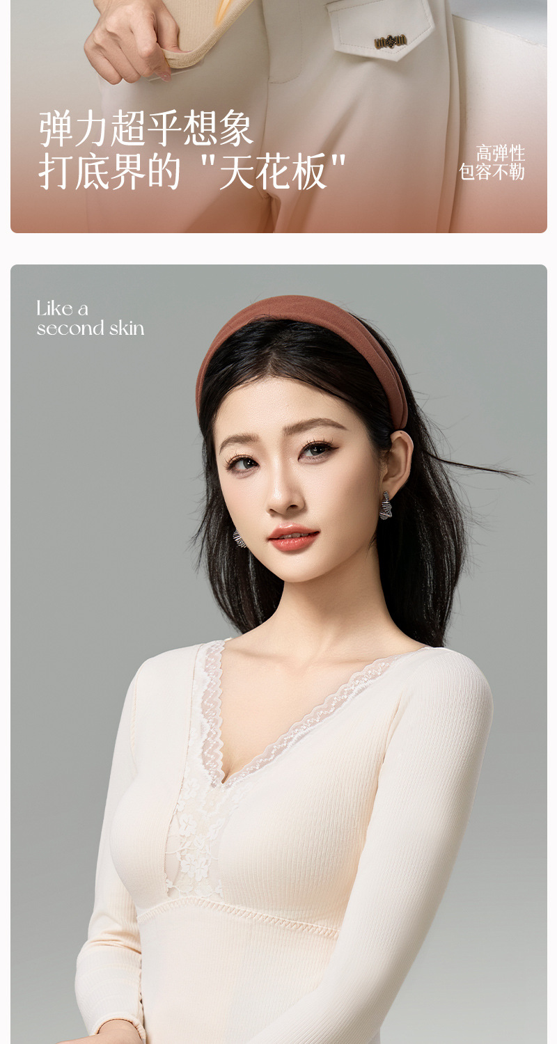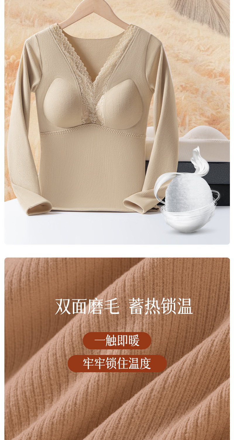 【活动价买一送一,颜色自备】轻轻云感保暖上衣带胸垫V领长袖修身美体无痕舒适打底衣