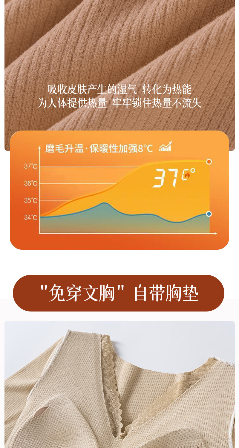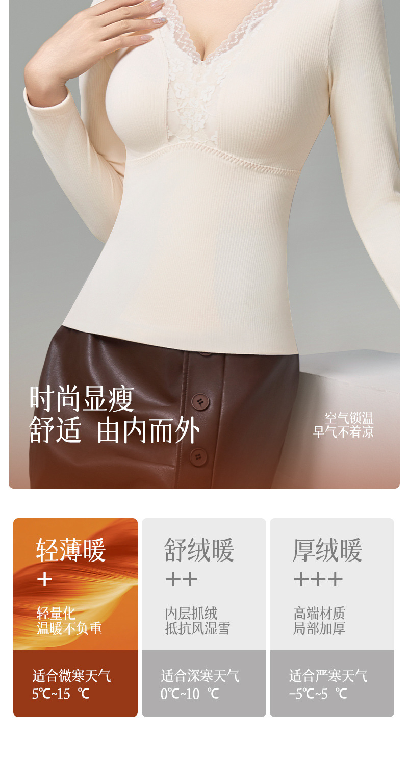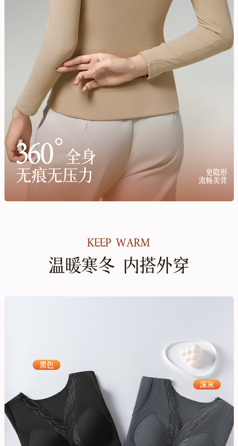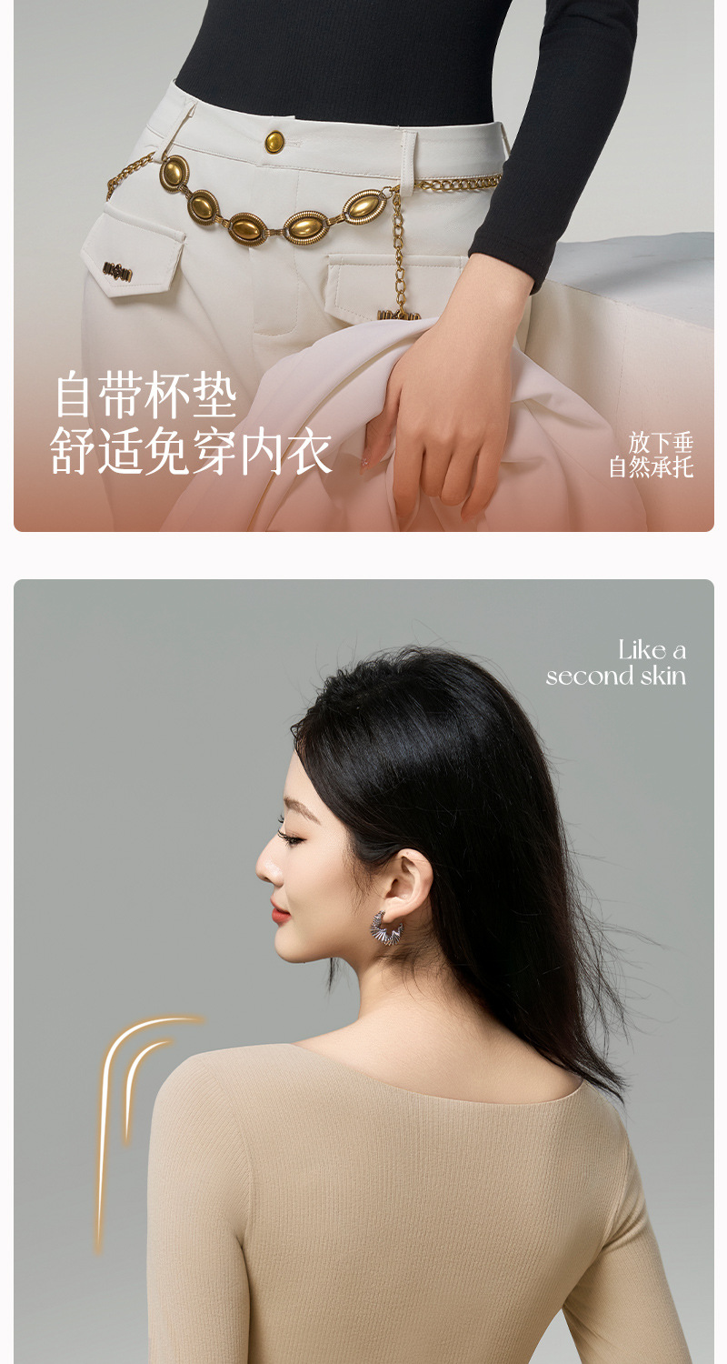 【活动价买一送一,颜色自备】轻轻云感保暖上衣带胸垫V领长袖修身美体无痕舒适打底衣