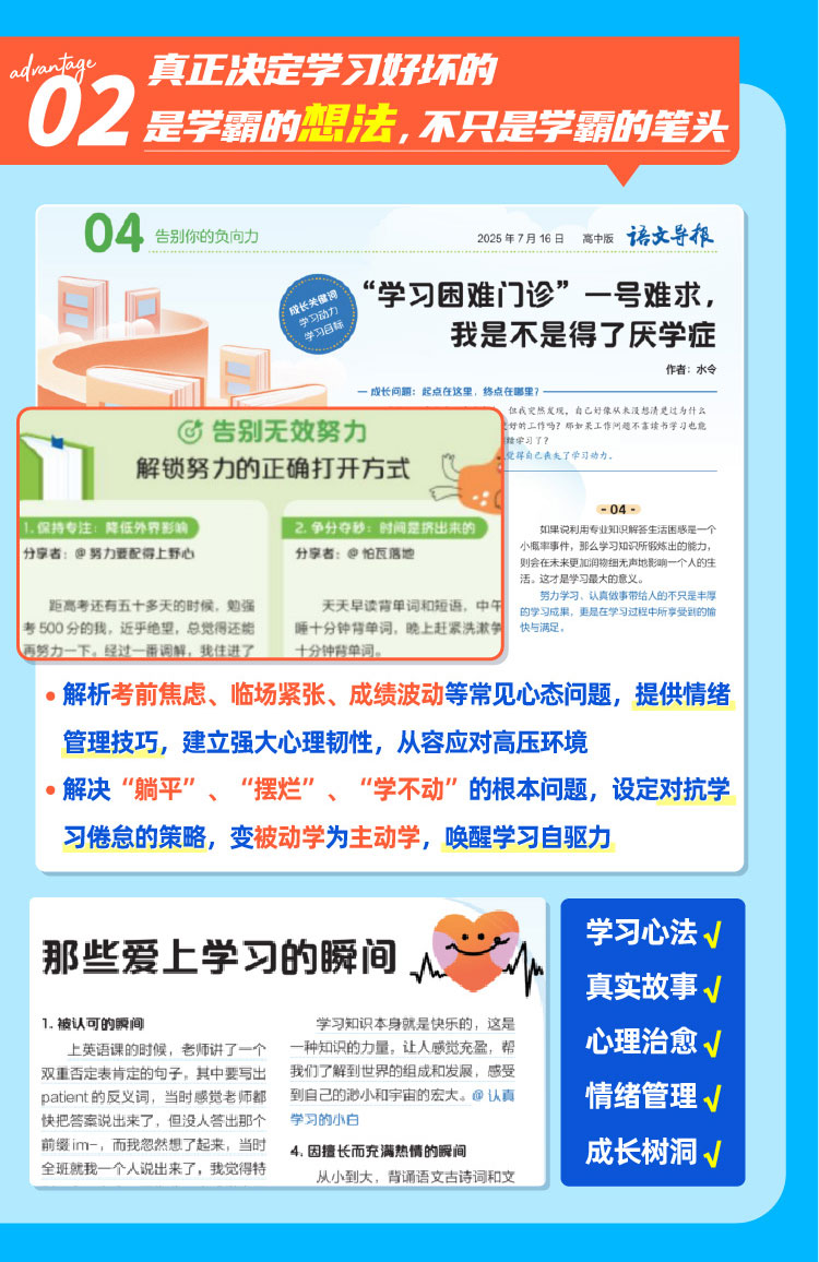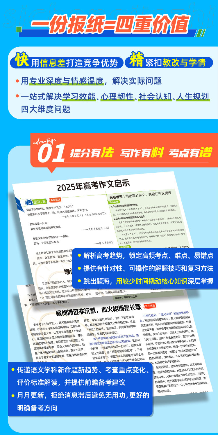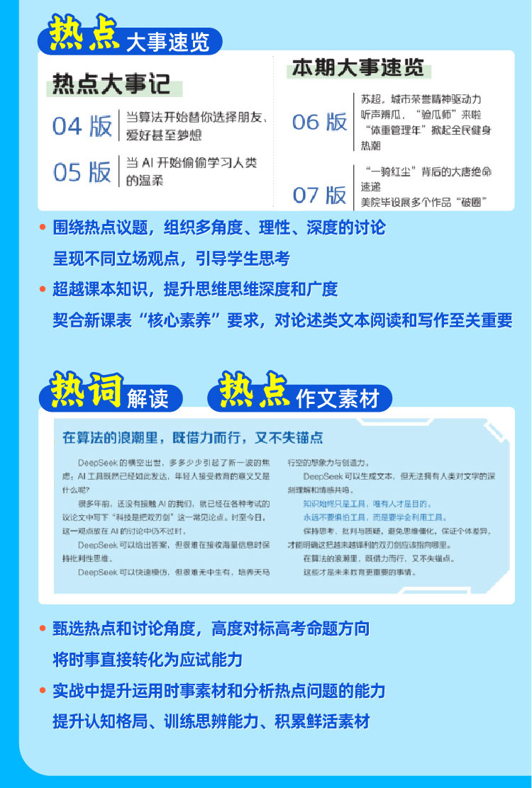 书籍介绍:语文新知,针对考点提分。心理特辑,缓解备考焦虑。时事热点,积累作文素材。生涯规划,破解志愿迷茫。