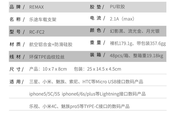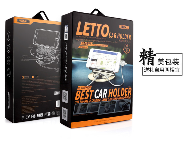Remax乐途车载手机支架车用仪表台汽车导航吸盘式一线多用防滑稳固