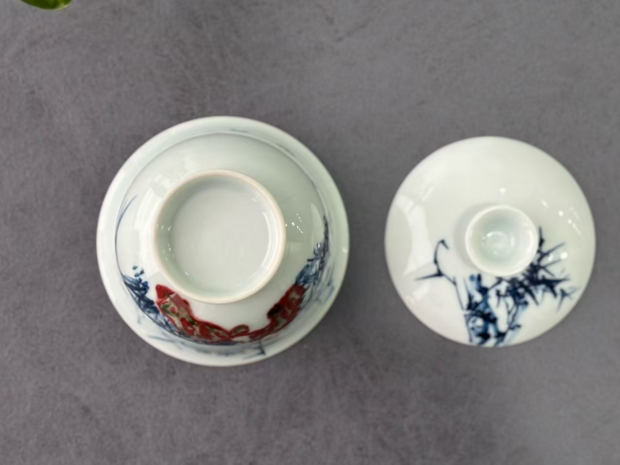 同底料青花釉里红壶承,手绘花中四君子,制作费工费时!