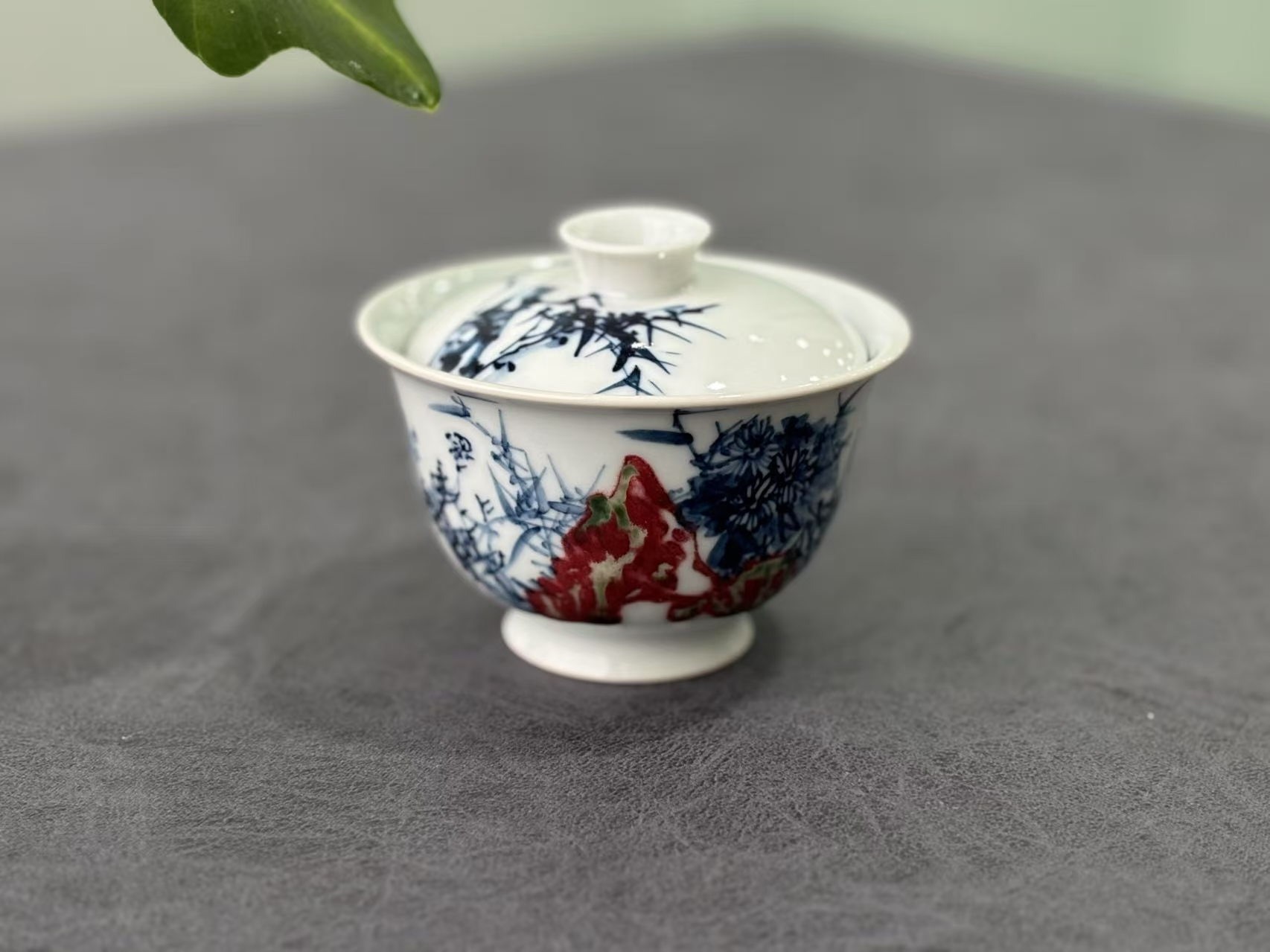 景德镇青花釉里红手绘花中君子带壶承三才盖碗《梅兰竹菊》