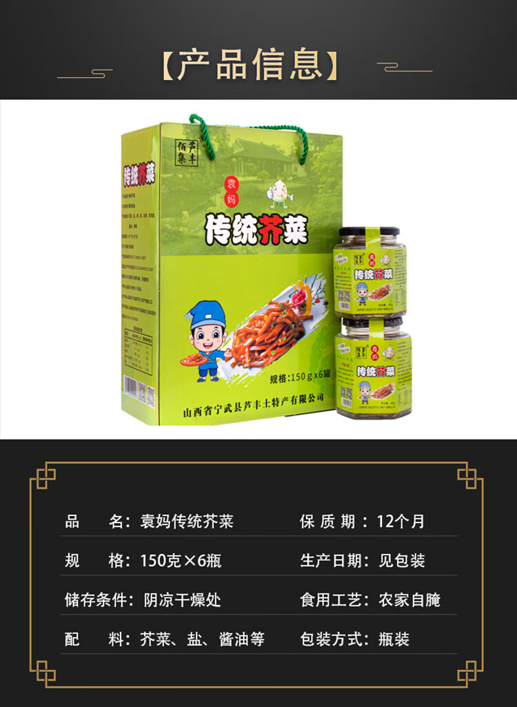 佰集芦丰·山西特产芥菜 酱菜咸菜 农家腌制下饭菜 开味小菜150g*6