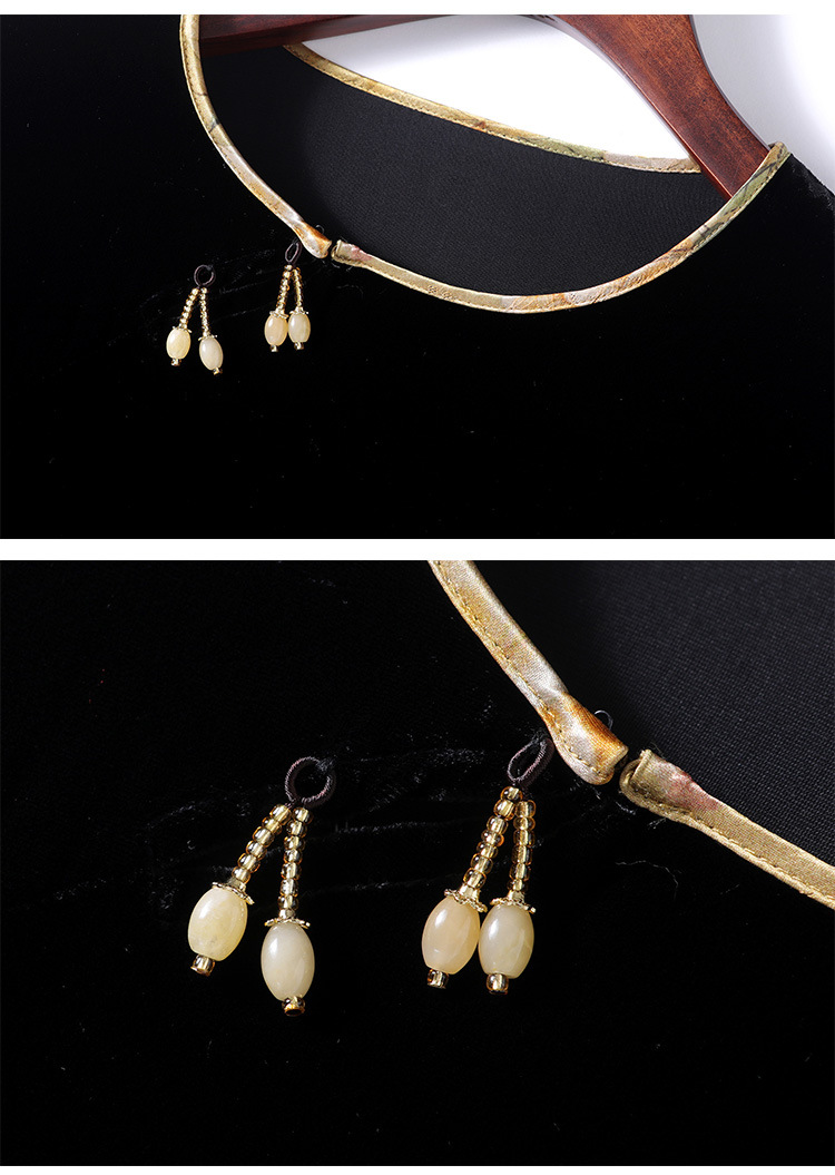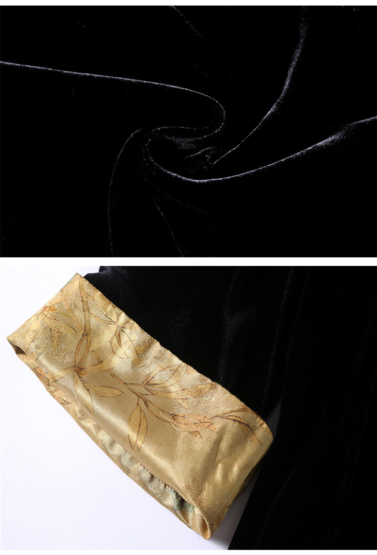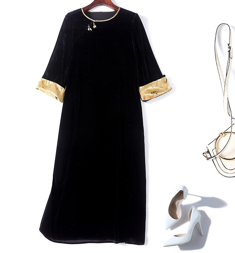 KDS-8917高品质大码胖mm连衣裙早秋新款中式圆领真丝丝绒中长款气质裙子