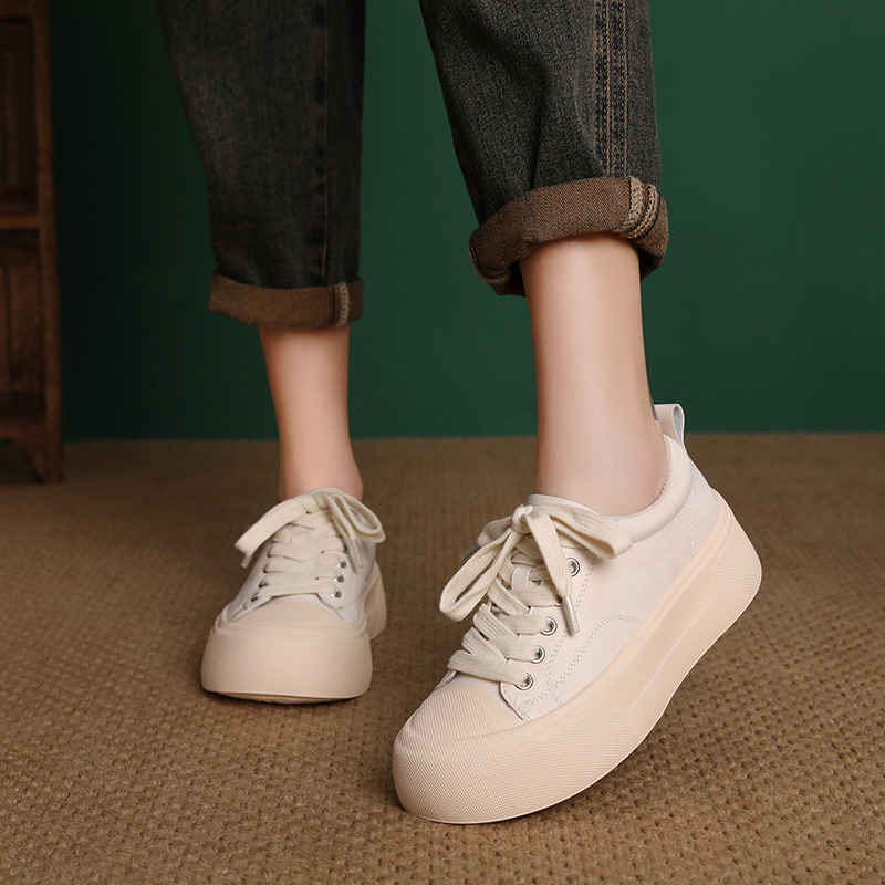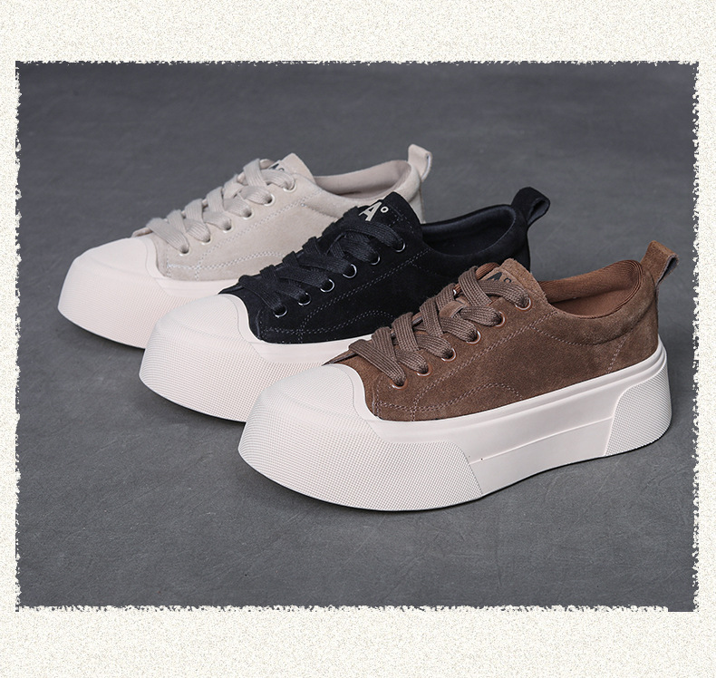 FC82553真皮复古厚底板鞋女秋冬新款圆头时尚百搭休闲单鞋女