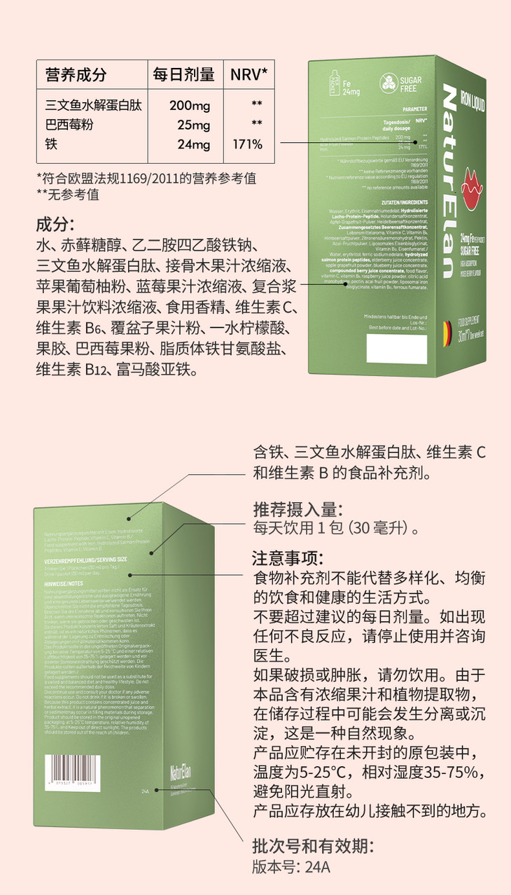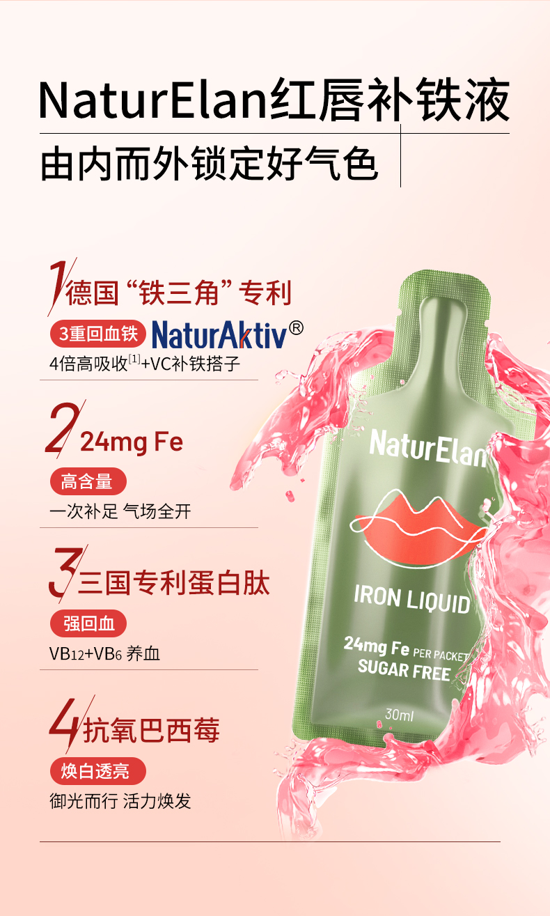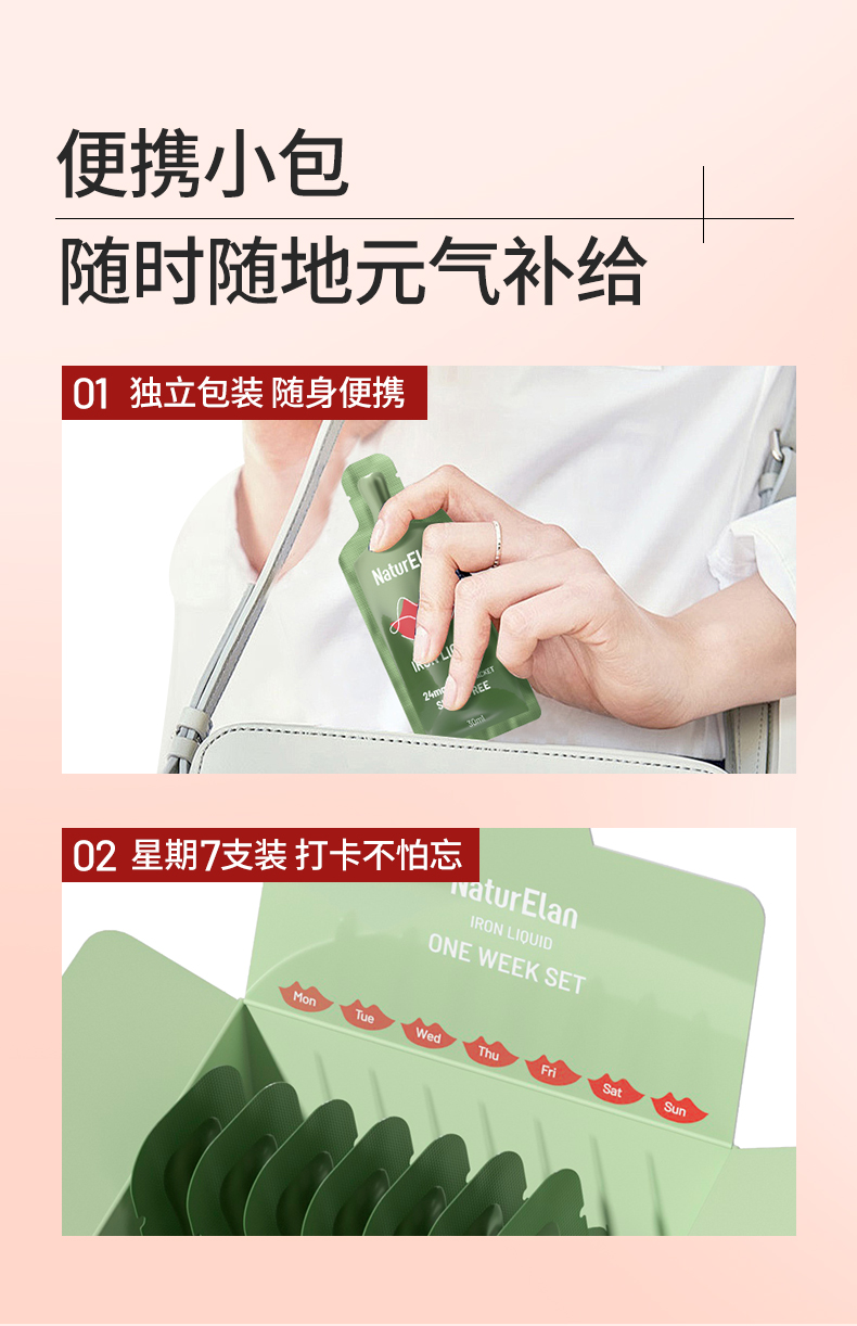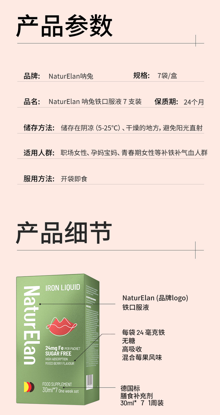 补铁口服液 | 24mg铁 共29支 1盒7支 4倍高吸收 养血 抗氧化 NaturElan呐兔(赠品补铁小样)