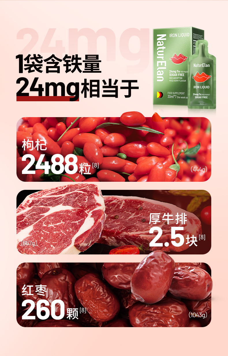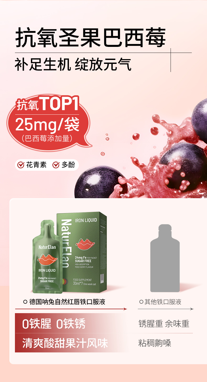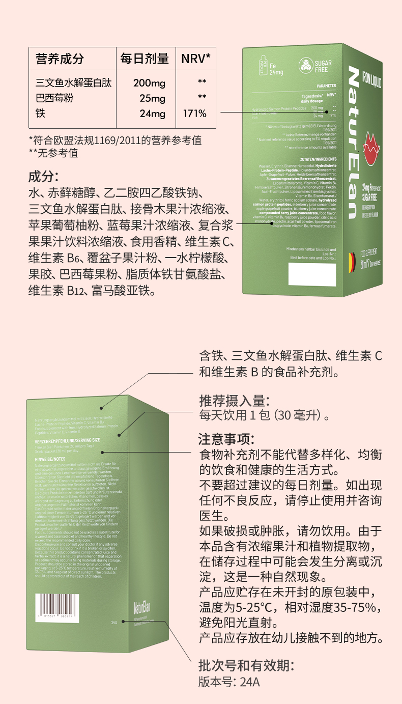 补铁口服液 | 24mg铁 共29支 1盒7支 4倍高吸收 养血 抗氧化 NaturElan呐兔(赠品补铁小样)