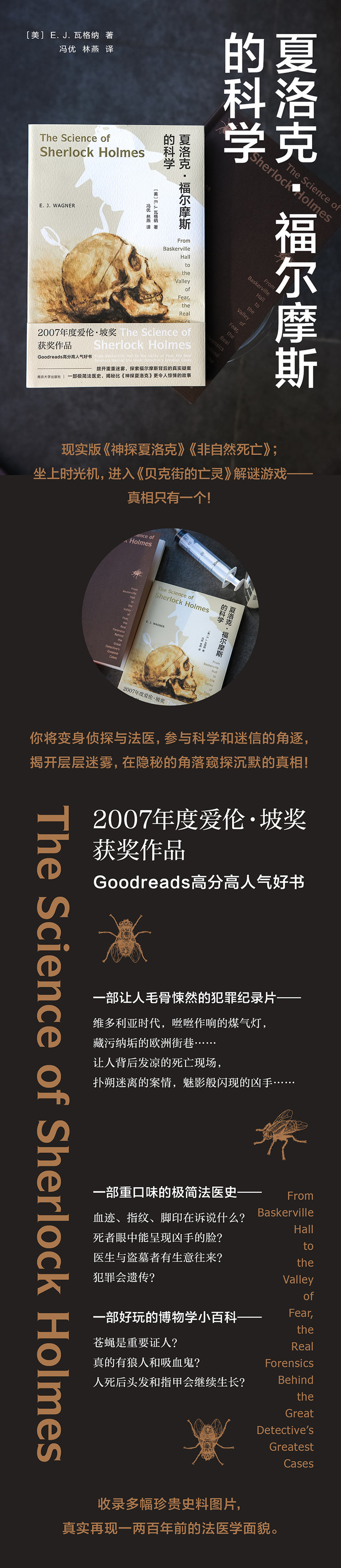 《夏洛克·福尔摩斯的科学》不逊于任何一件福尔摩斯谜案,令人大开眼界。E. J. 瓦格纳以大侦探福尔摩斯的非凡冒险为出发点,将那个时代真实发生的疑案(如开膛手杰克案)娓娓道来,不断穿梭于小说与历史之间,为理解福尔摩斯的故事和现代法医侦查提供了新的视角。