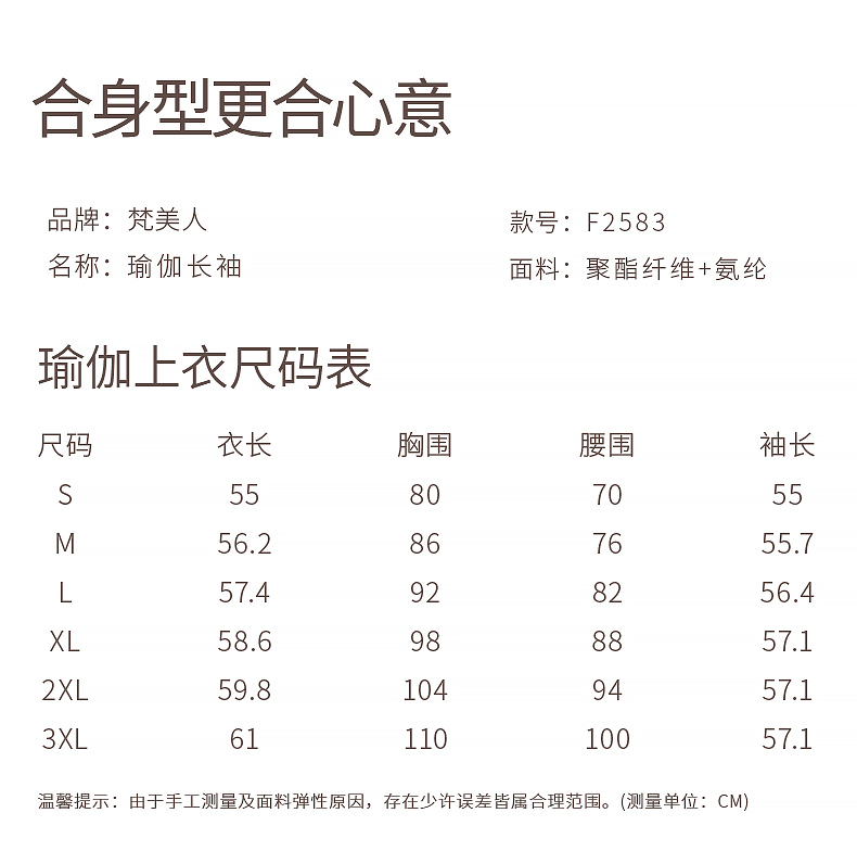 梵美人 F2583 瑜伽长袖 无胸垫 轻暖抓绒