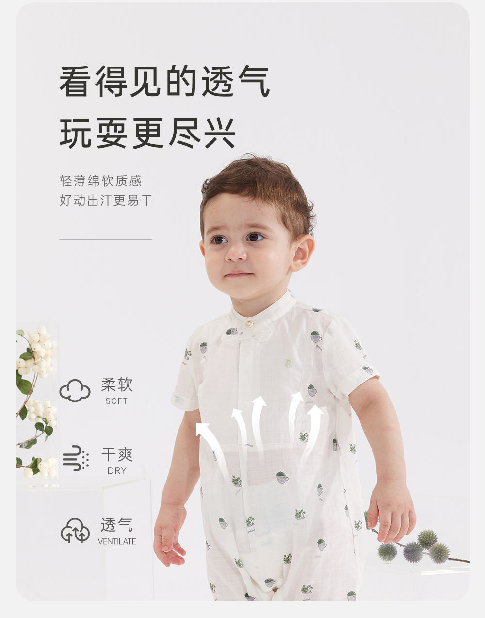 【商场同款】英氏婴儿连体衣透气不闷汗婴儿衣服纯棉新款
