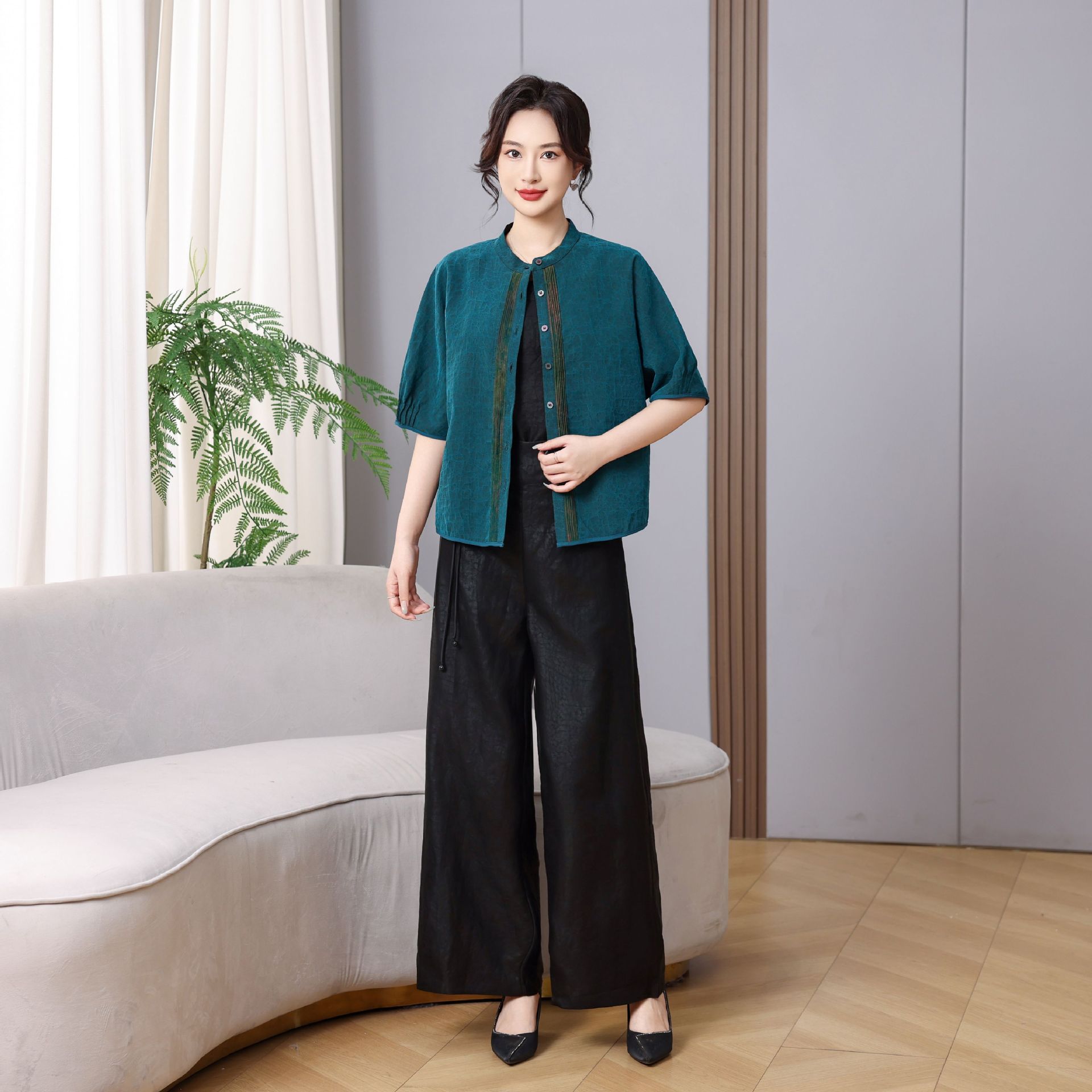 丁摩真丝香云纱老料龟裂纹上衣新款高端时尚100%桑蚕丝新中式双面穿AL5651