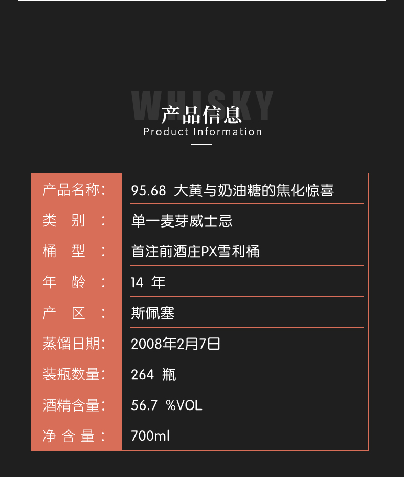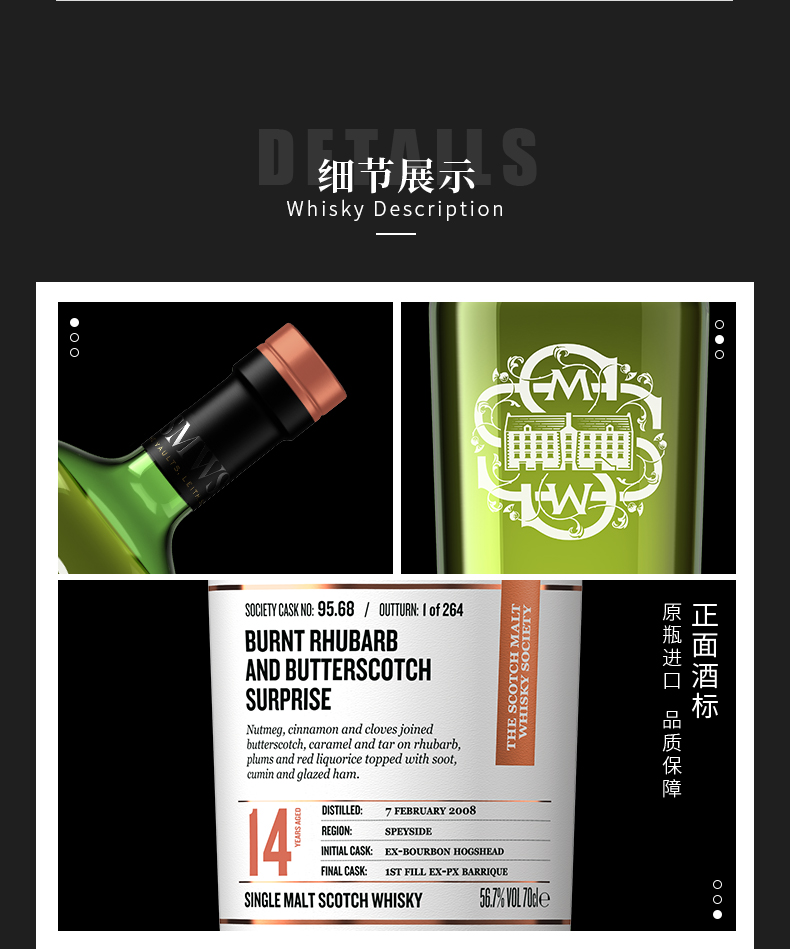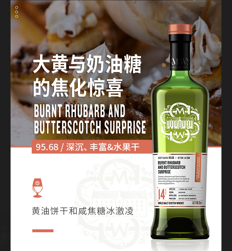 【SMWS】 95.68 大黄与奶油糖的焦化惊喜 14年 单一麦芽 威士忌 雪莉桶 洋酒(买赠一年会籍)