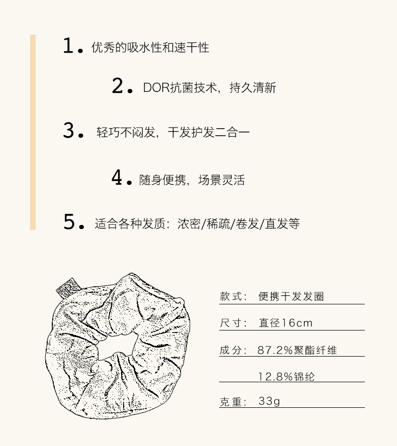 「怎么用都行」RIGURGITO 便携⼲发发圈 Ehand