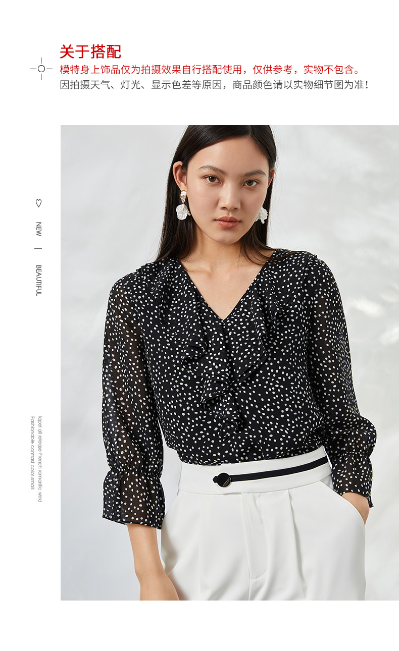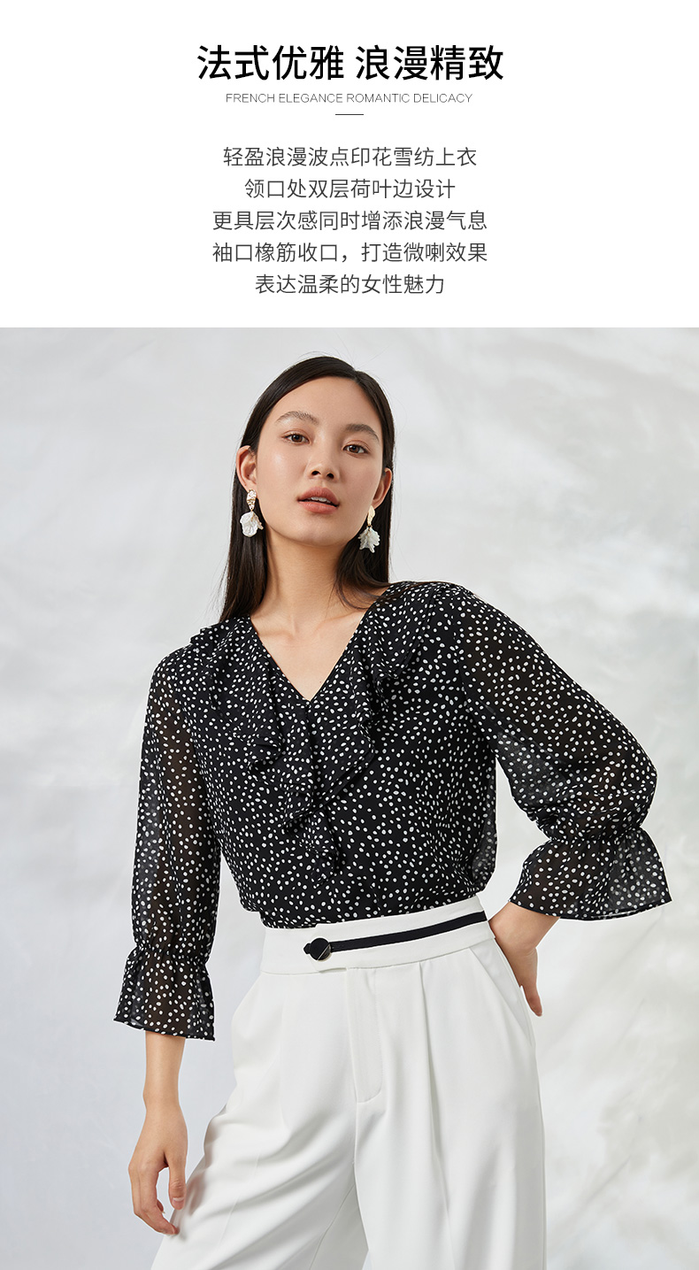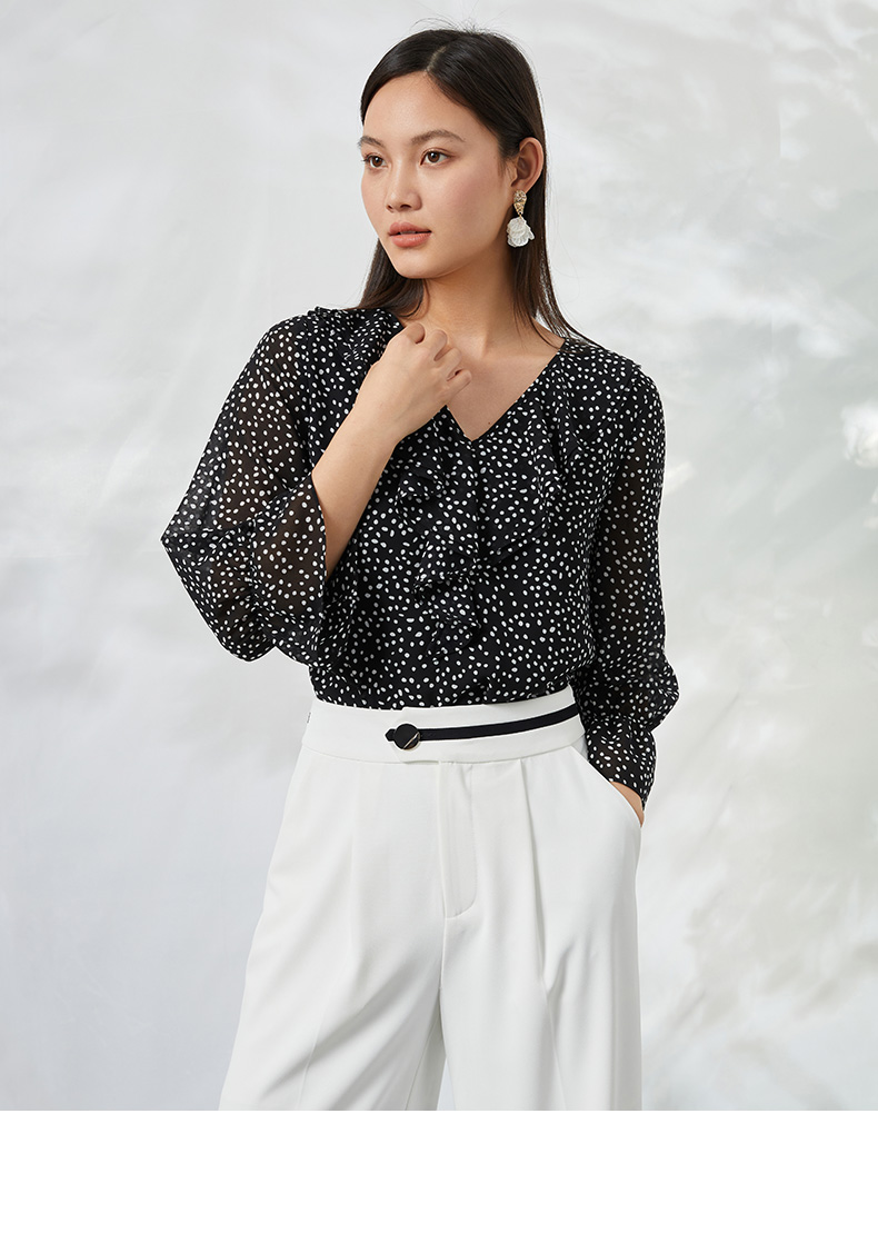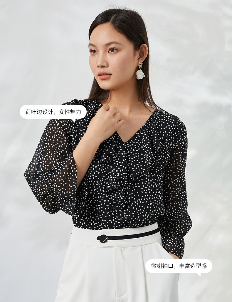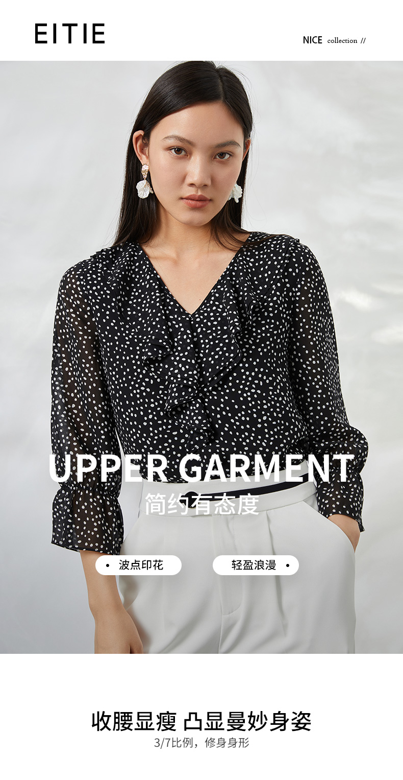 EITIE爱特爱夏季新款V领波点长袖衬衣宽松小上衣6613309