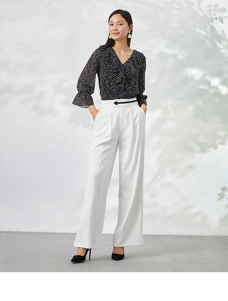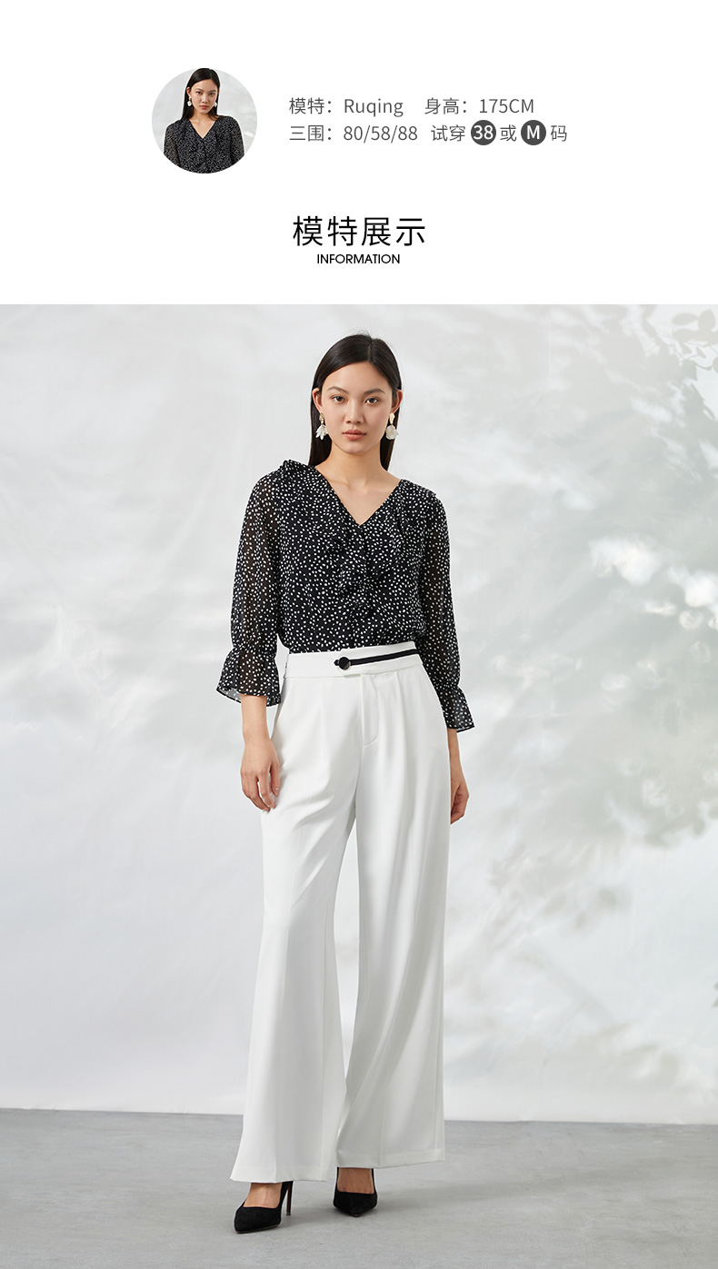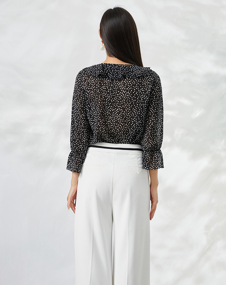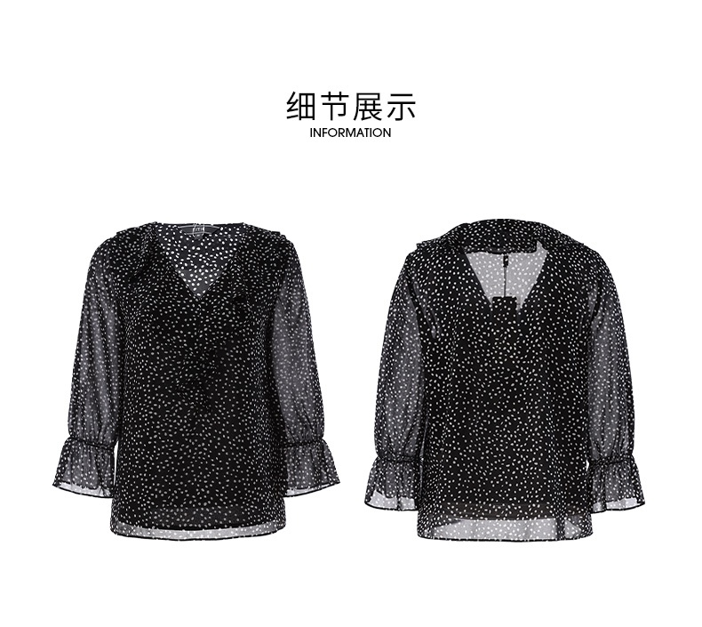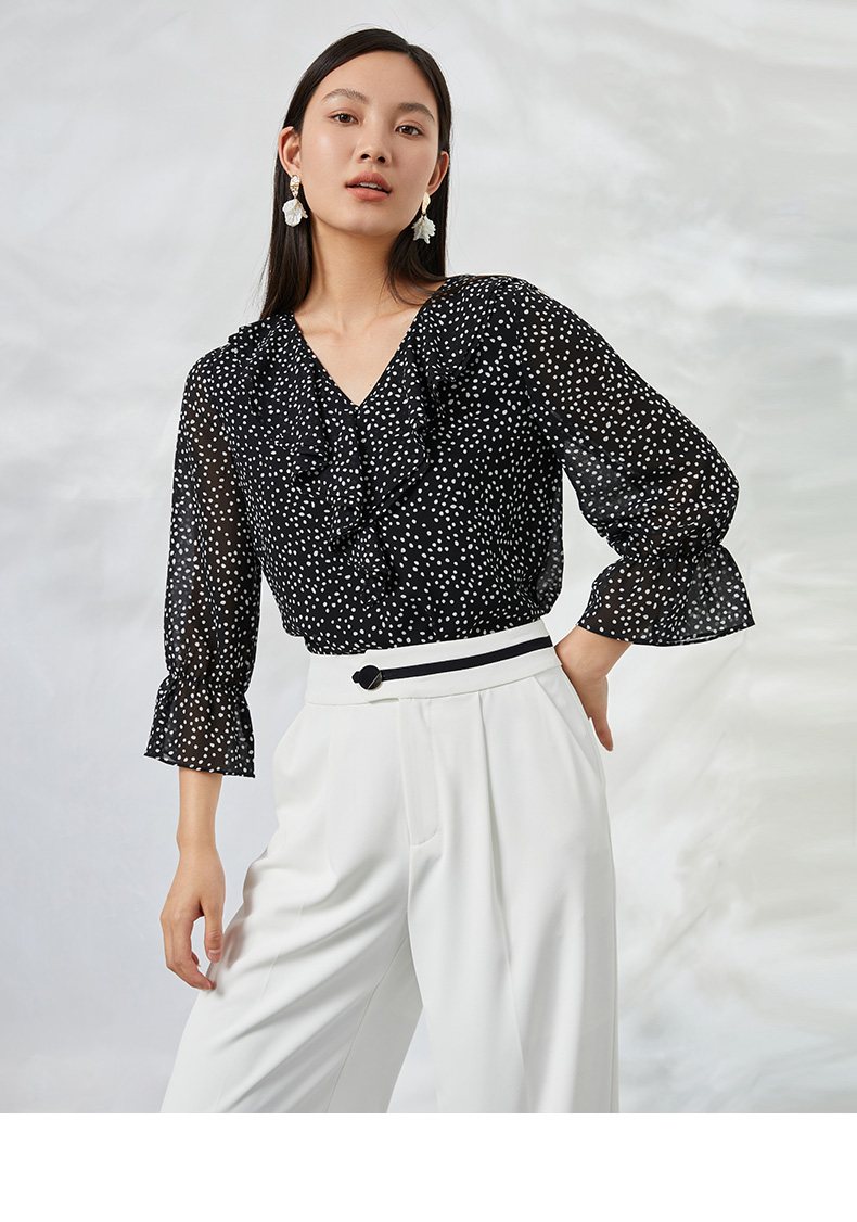 EITIE爱特爱夏季新款V领波点长袖衬衣宽松小上衣6613309