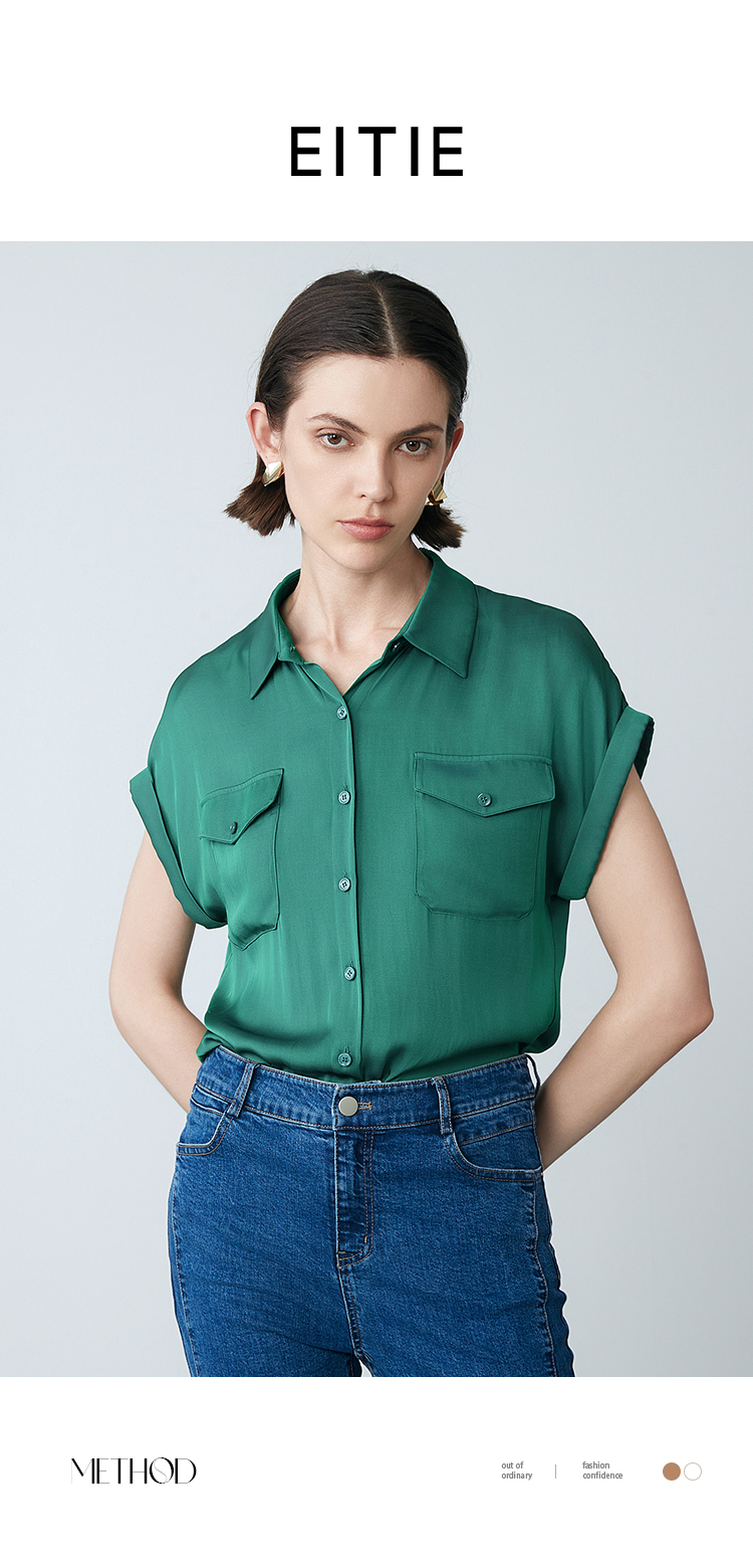 EITIE爱特爱夏季新款宽松直筒显瘦通勤简约百搭衬衫7809504