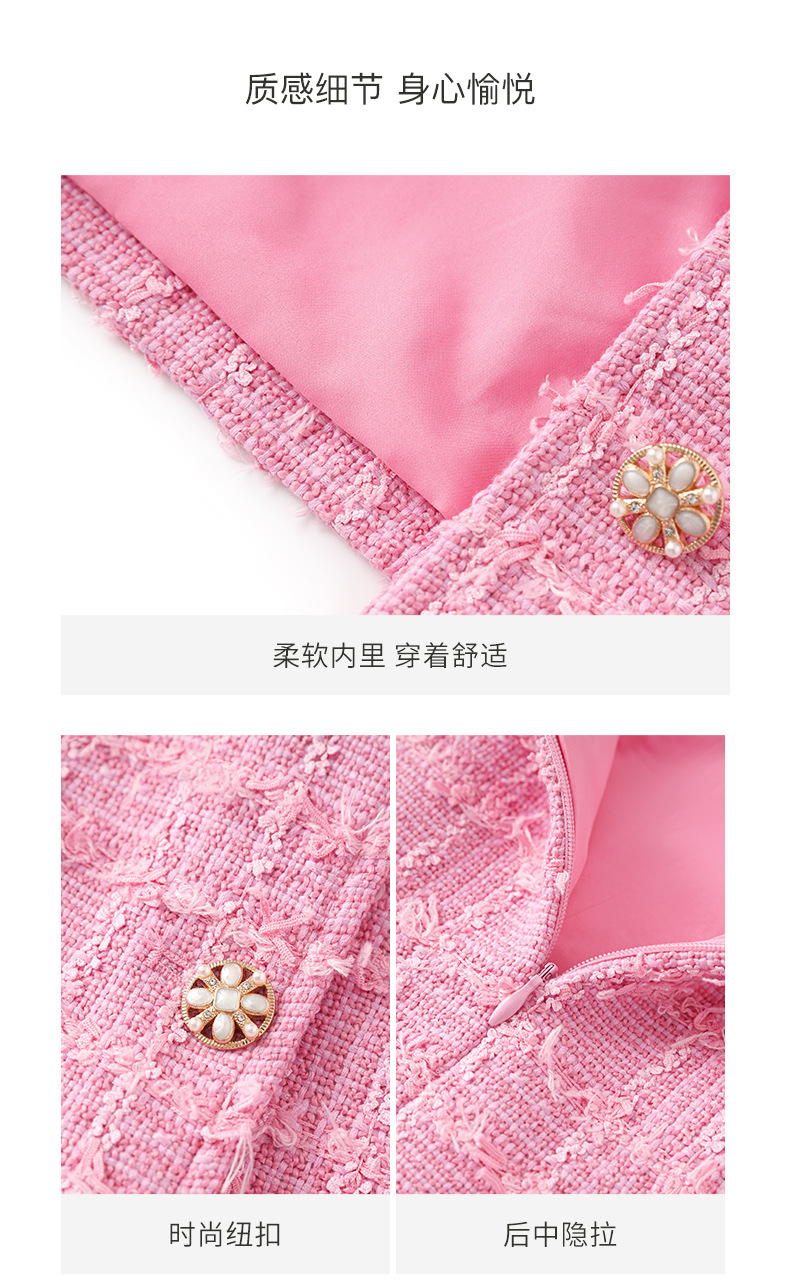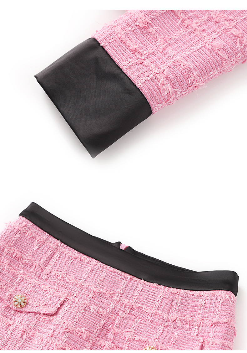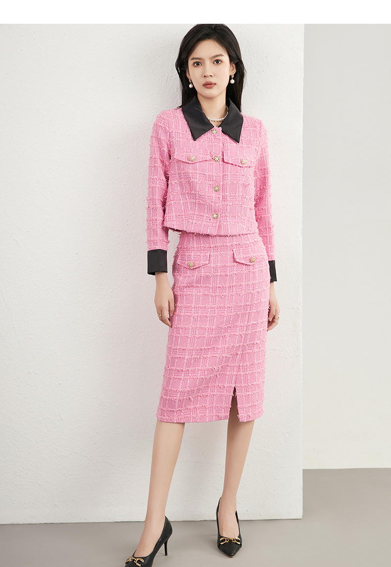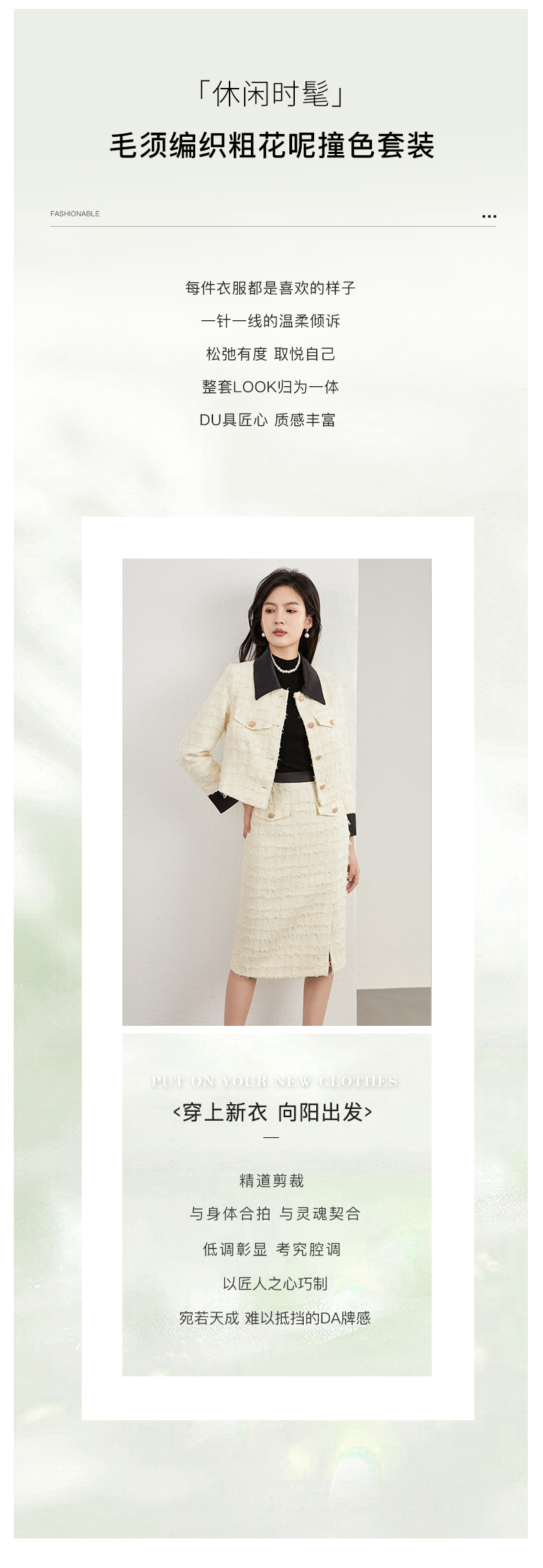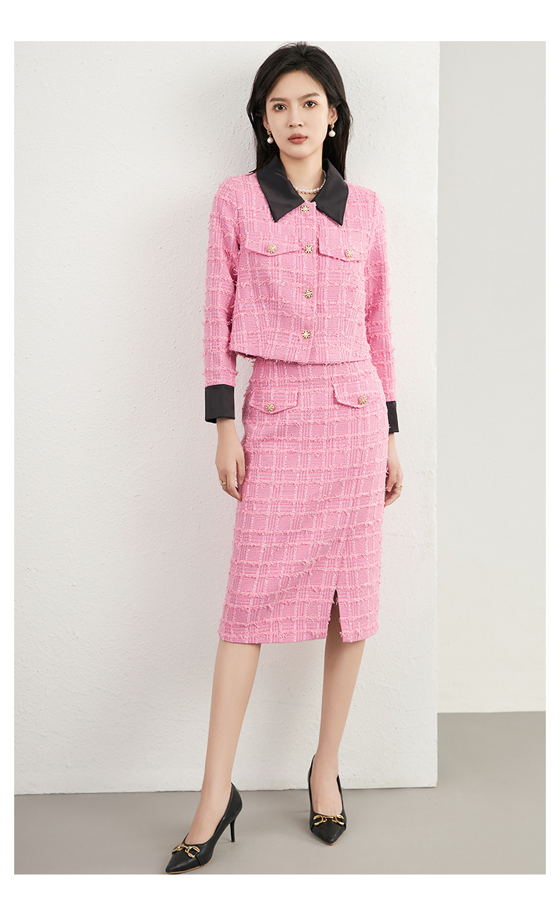 高级感小香风套装,名媛翻领撞色短外套+直筒半裙两件套WLZD-2323302