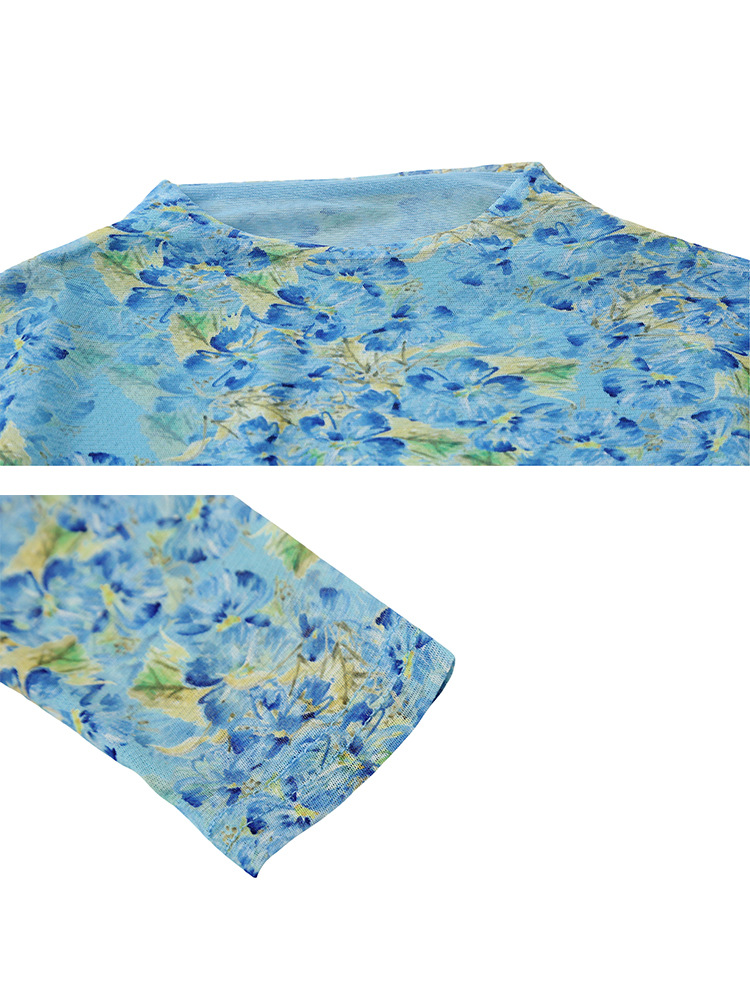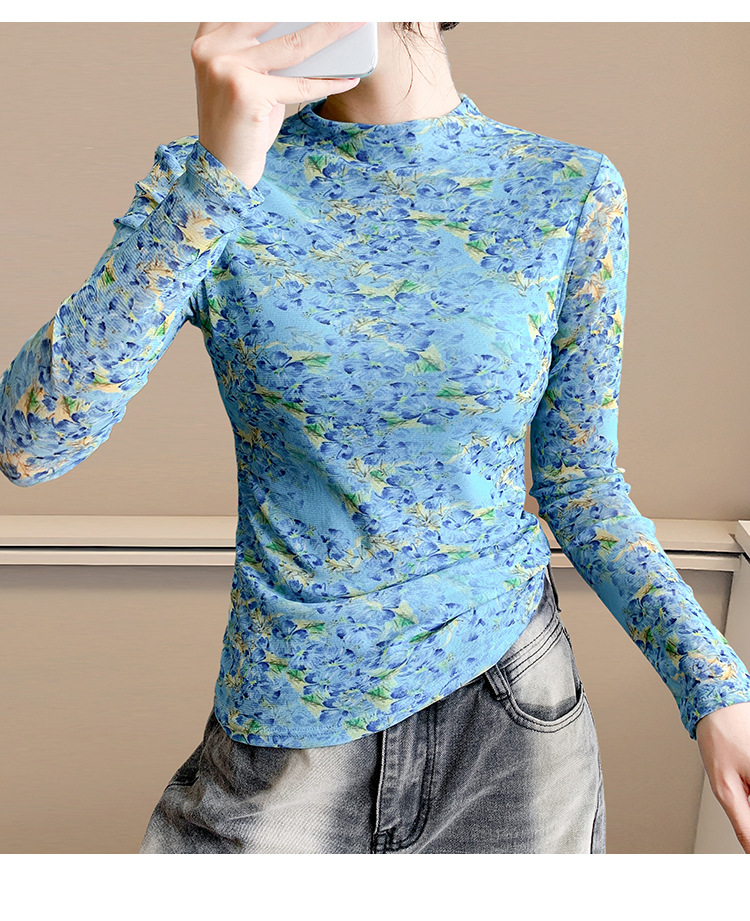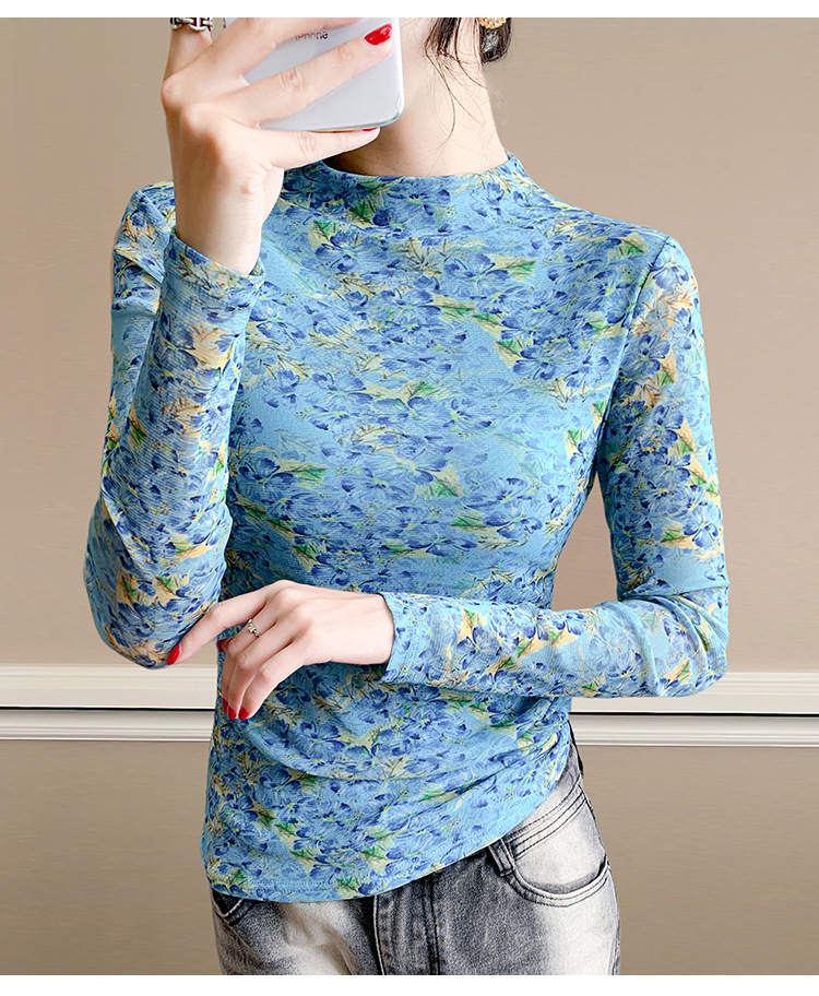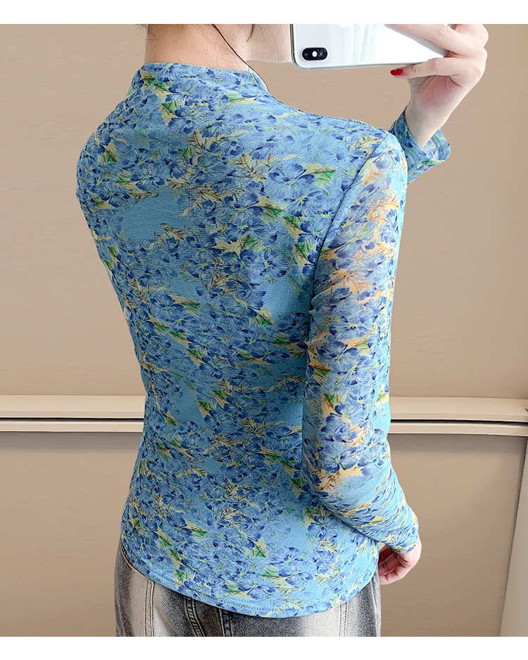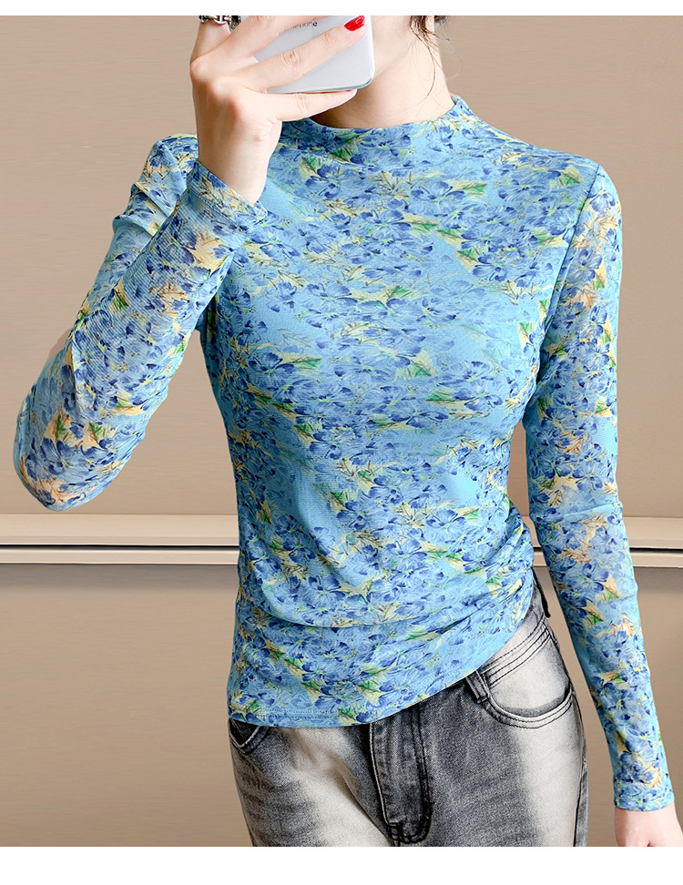 KQL A55F8573时尚洋气高弹网长袖印花半高领打底衫T恤