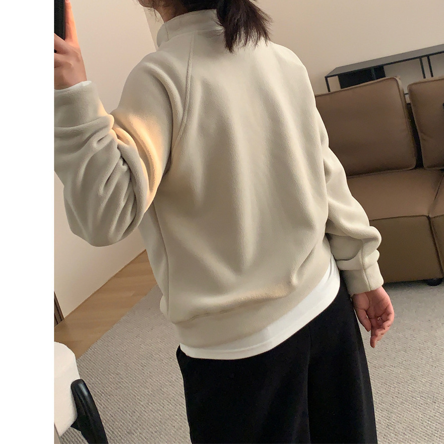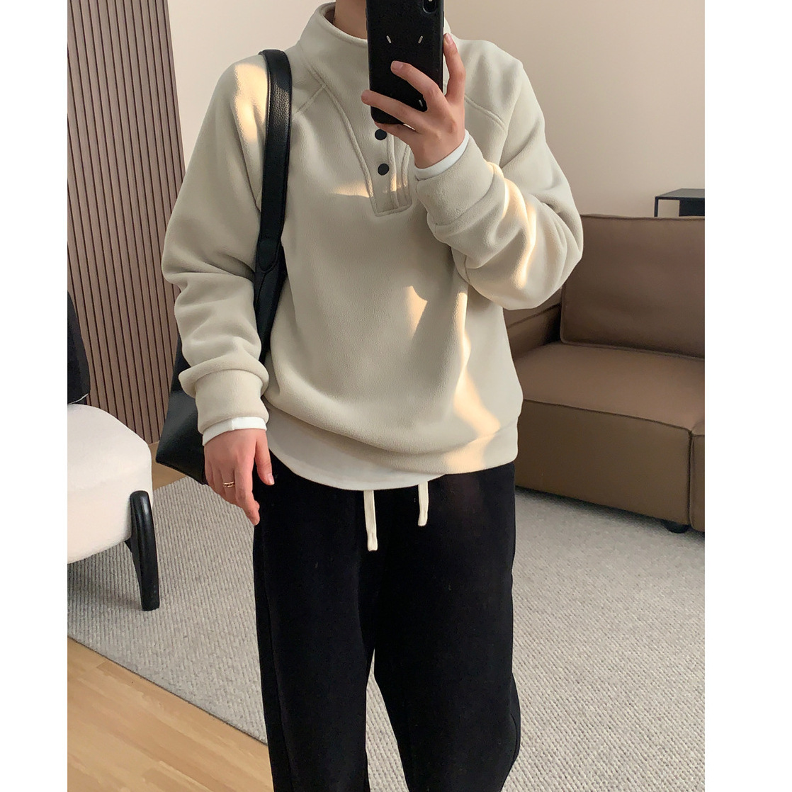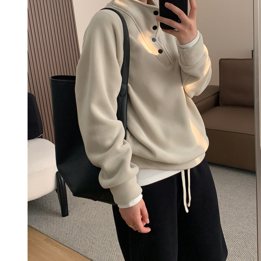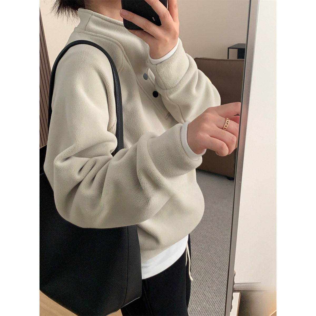 【轻盈舒适保暖❗️治愈级柔软】美式复古加绒加厚双面澳粒绒立领套头卫衣女冬2025保暖休闲上衣潮。jb