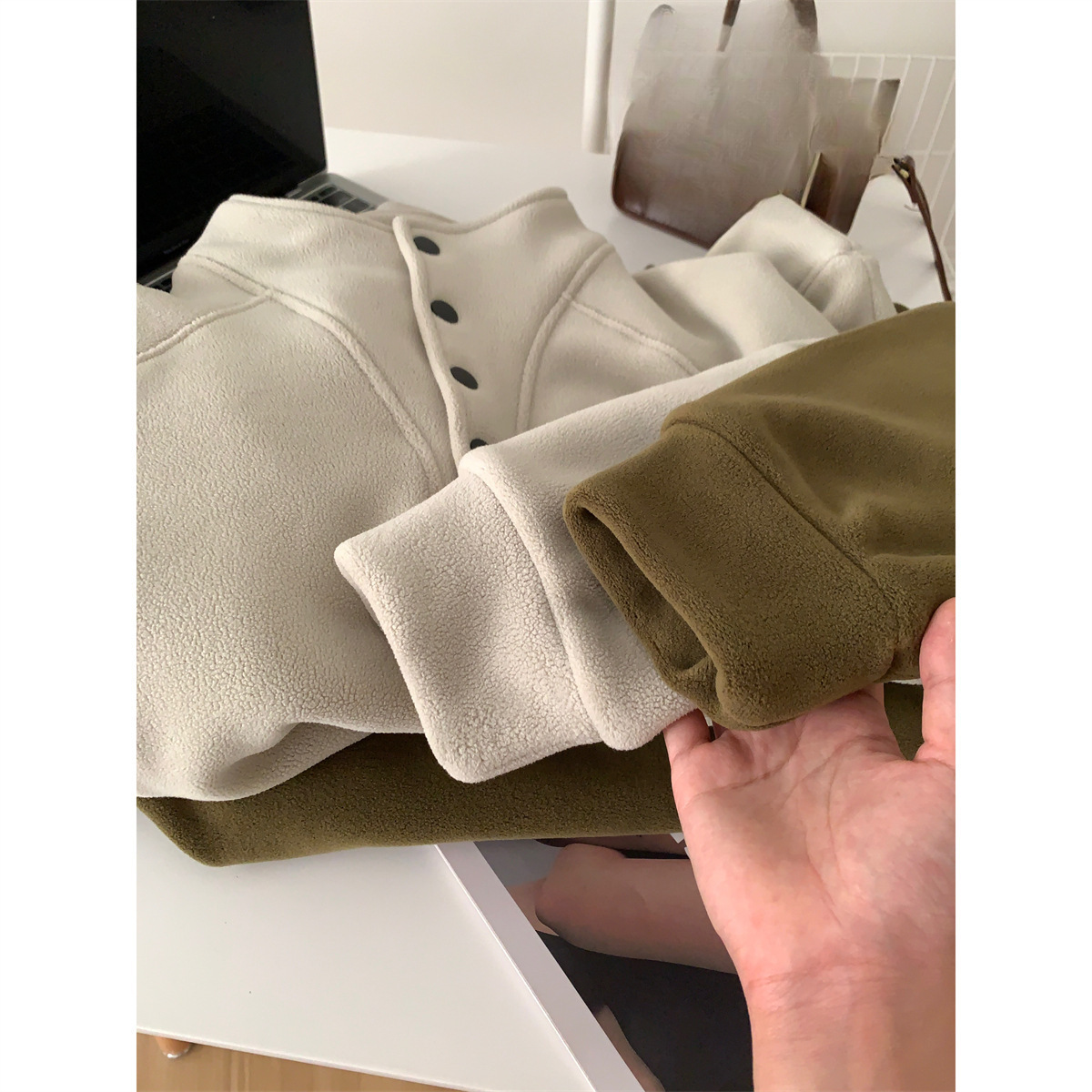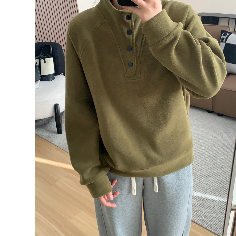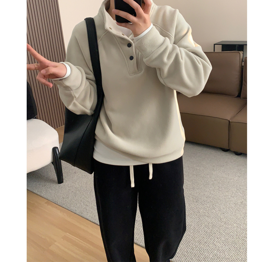 【轻盈舒适保暖❗️治愈级柔软】美式复古加绒加厚双面澳粒绒立领套头卫衣女冬2025保暖休闲上衣潮。jb