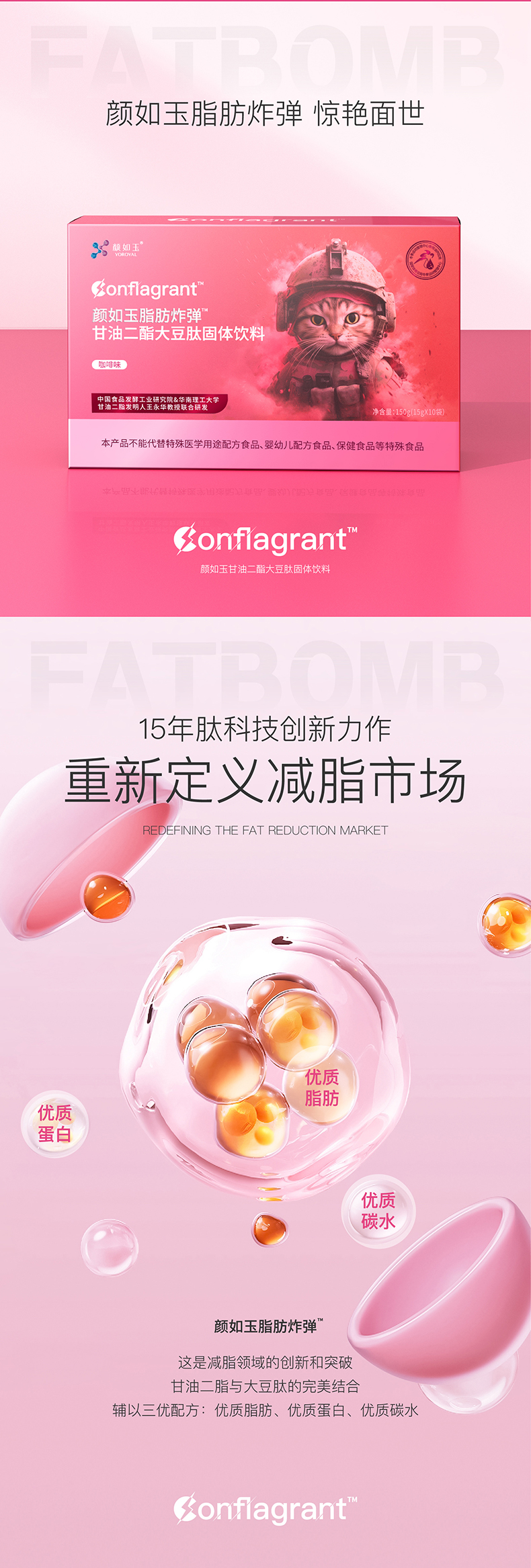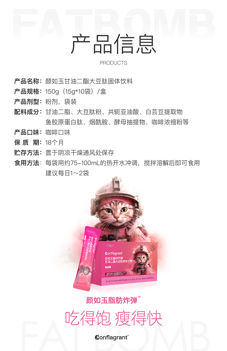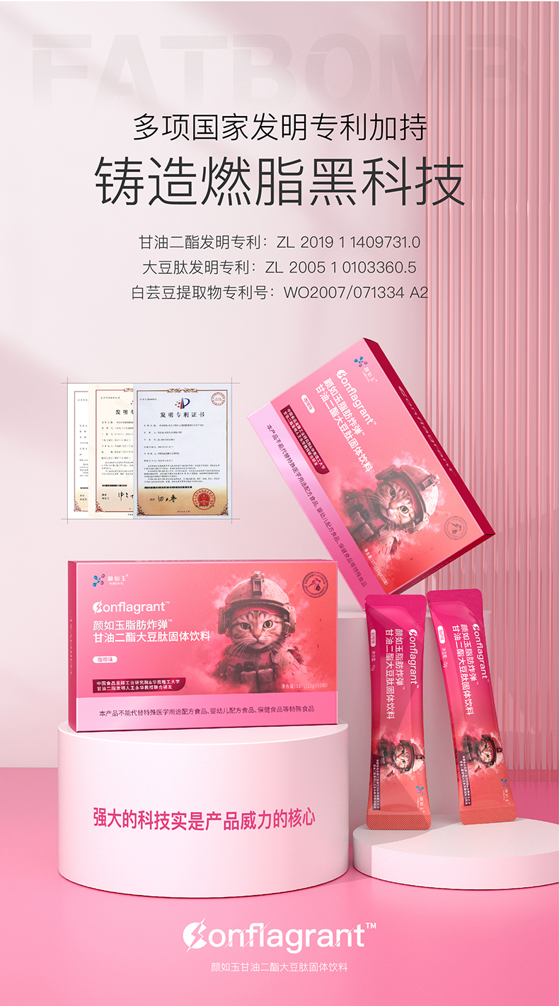 颜如玉脂肪炸弹甘油二酯大豆肽固体饮料