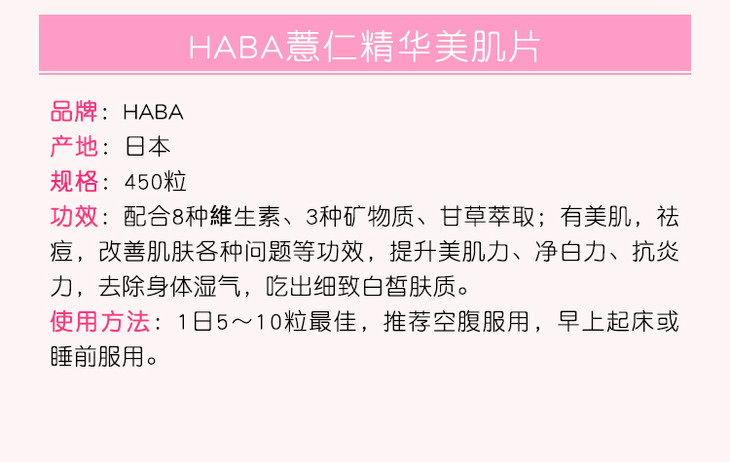 HABA无添加 薏仁丸薏米精华片美肌片450粒
