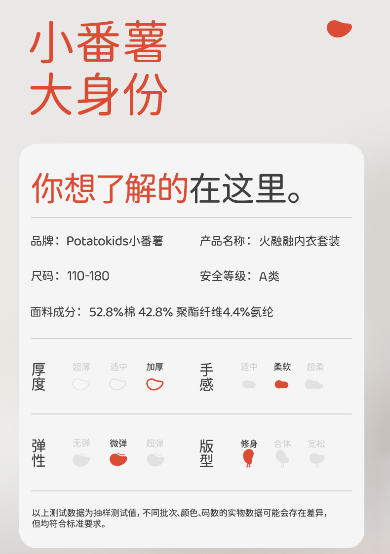 小番薯potatokids 儿童秋冬款弹力内搭火融融保暖打底内衣套装PA36158161