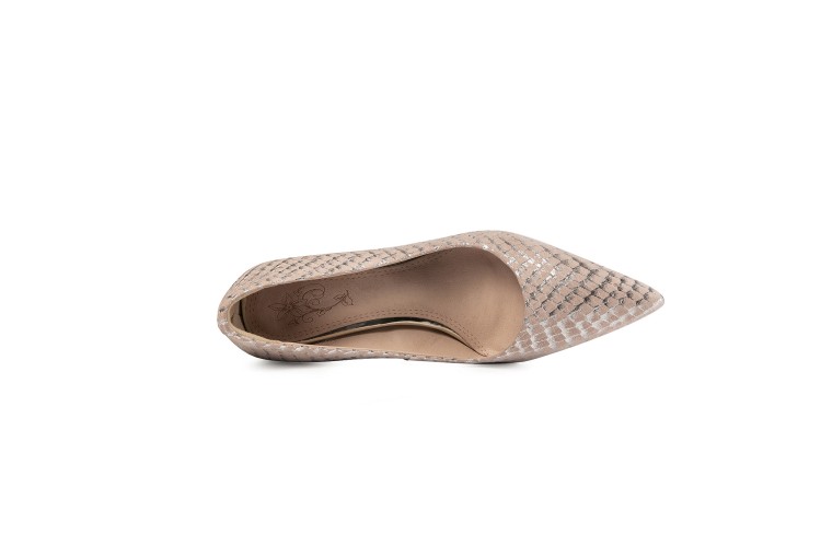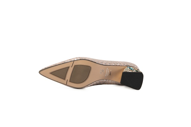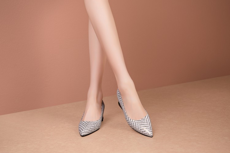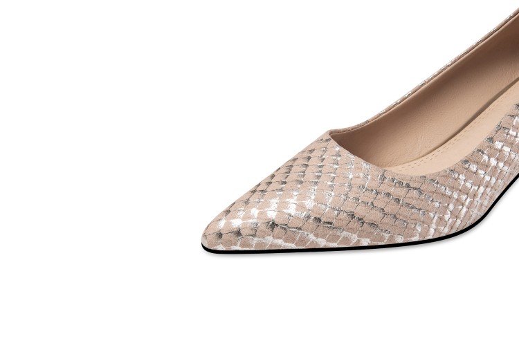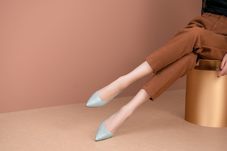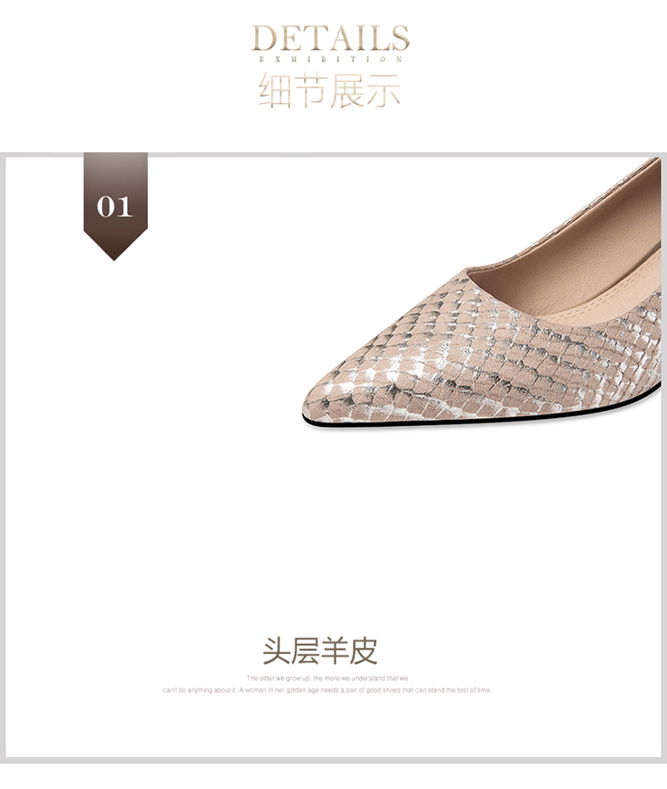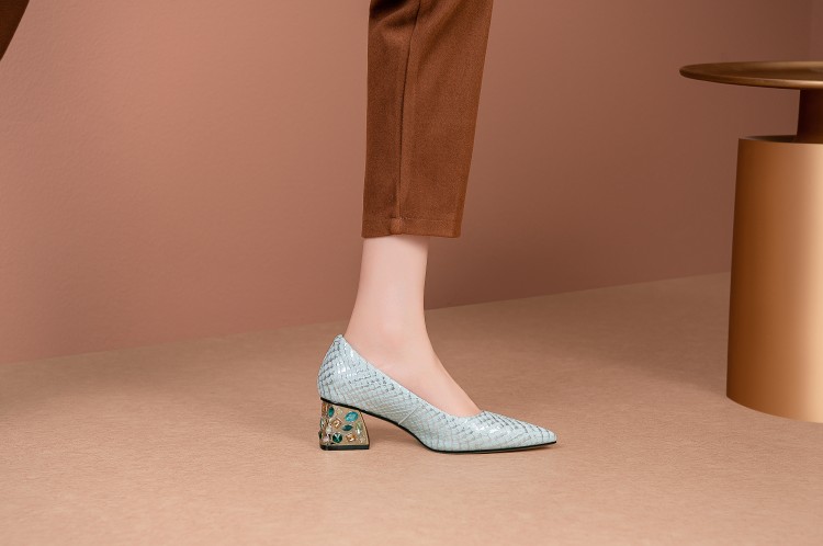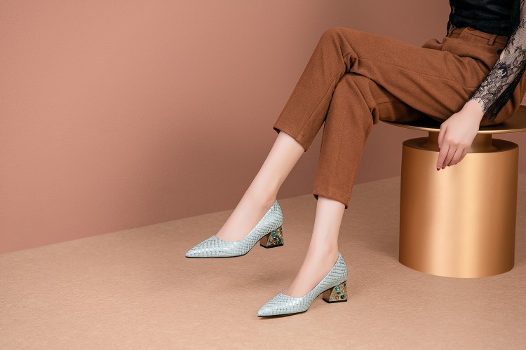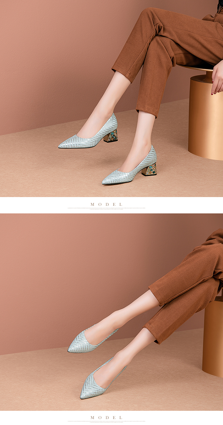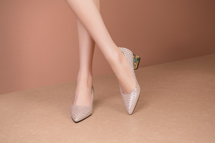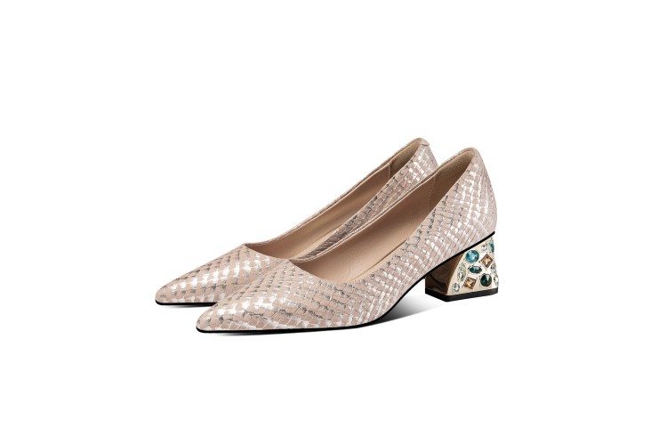 【预售5天】尖头舒适真皮水钻金属粗跟白色单鞋浅口简约配裙子女鞋XME&W9200