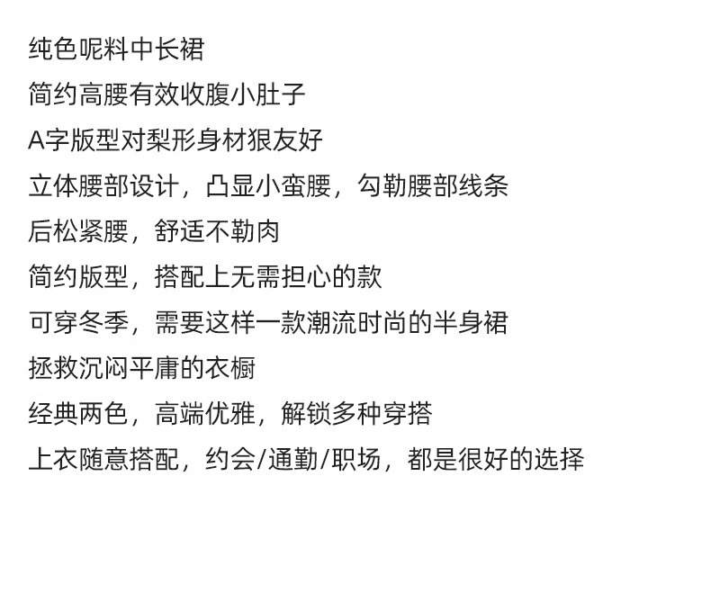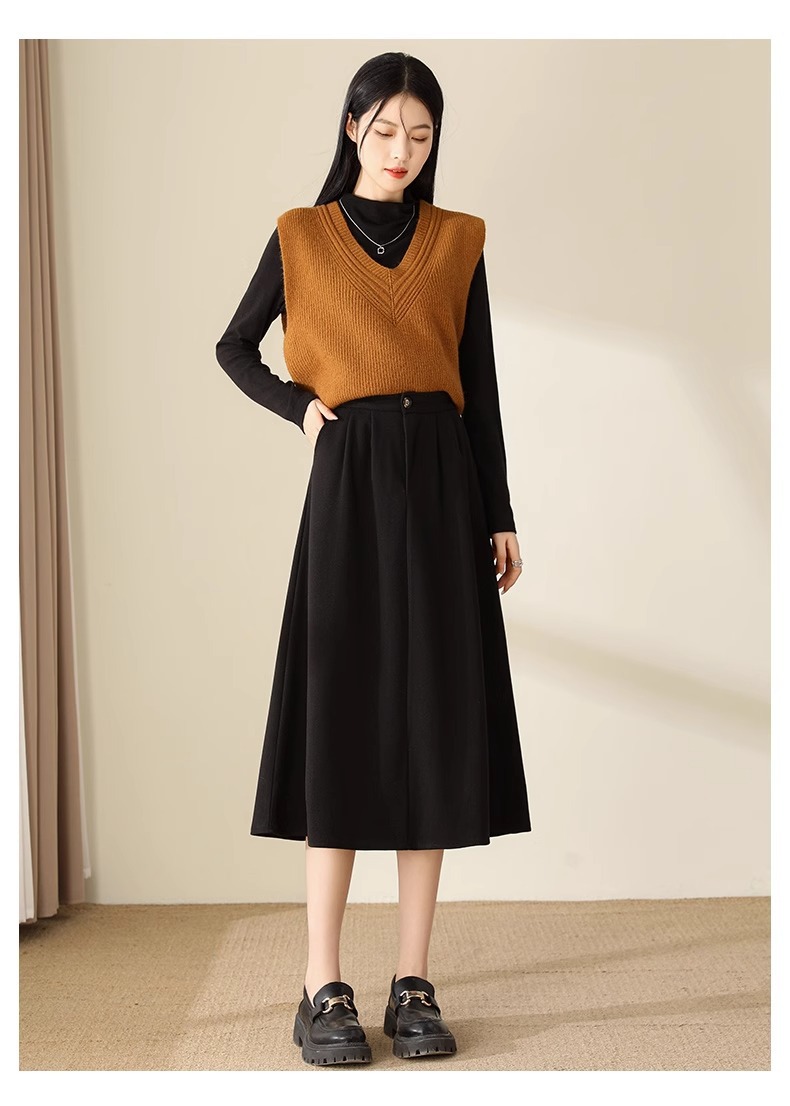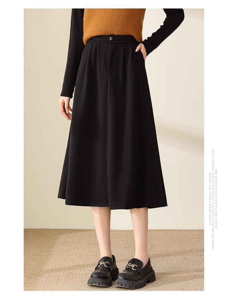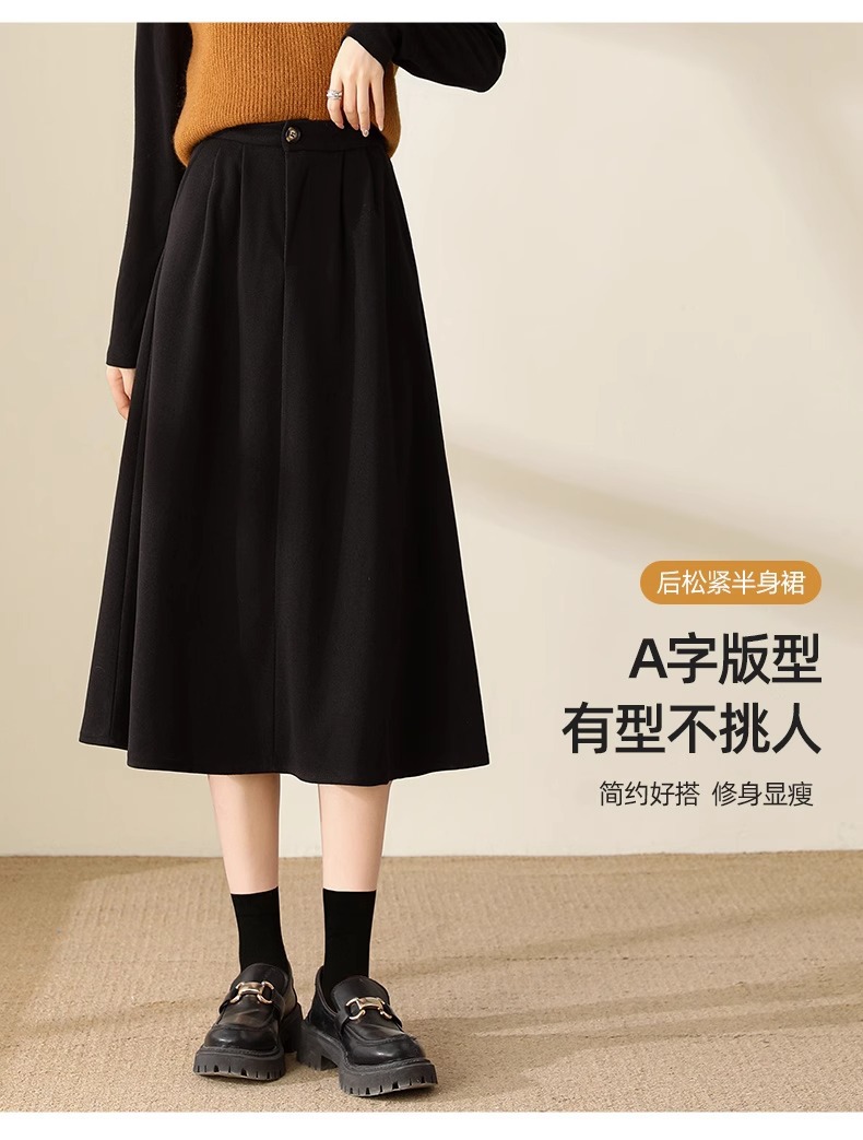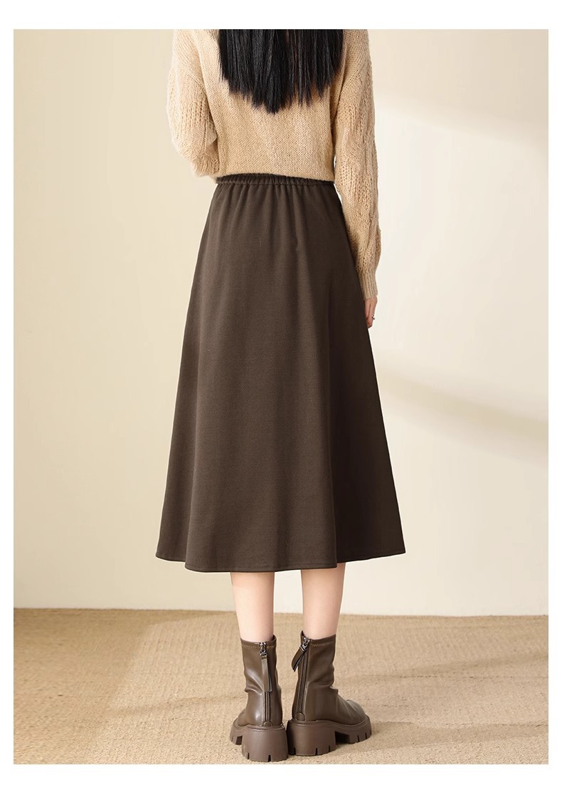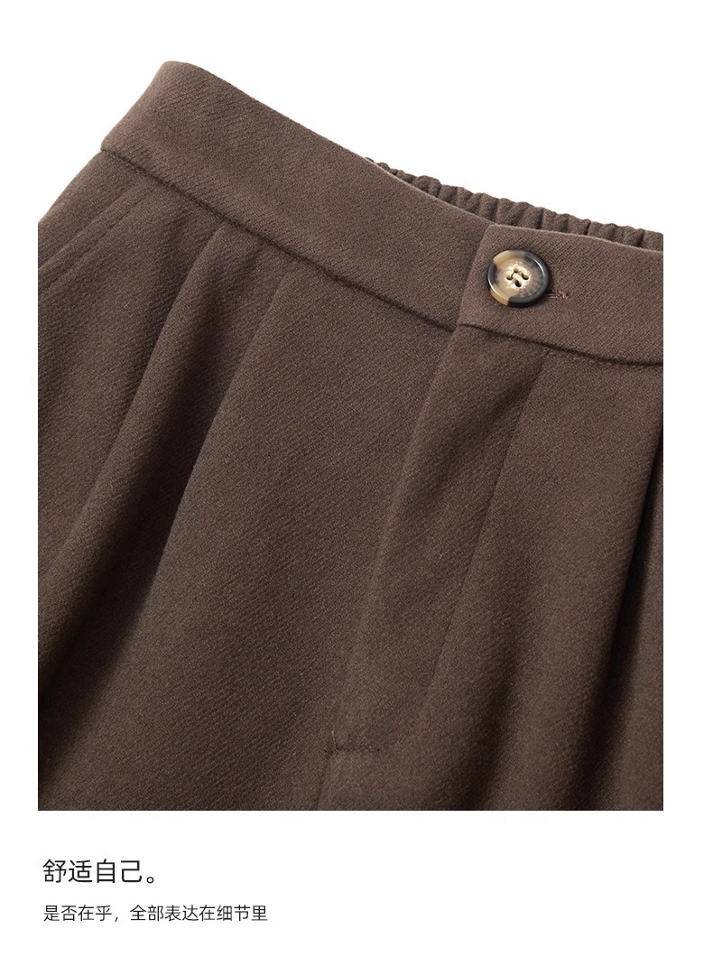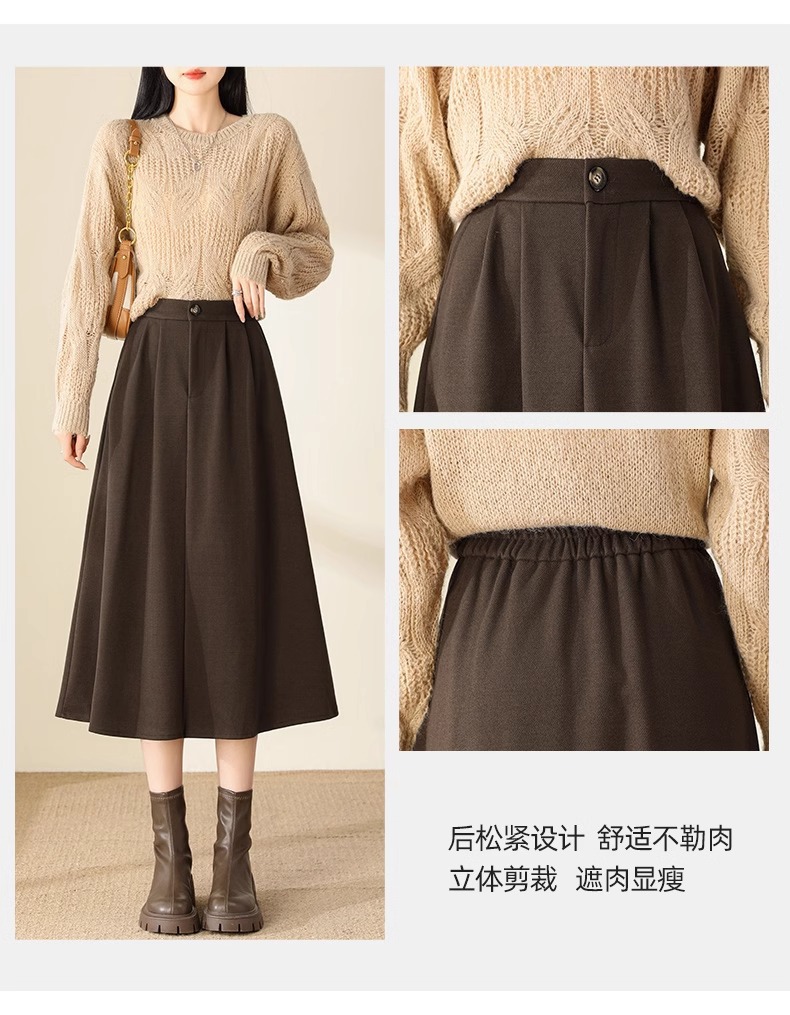 百媚生 高腰咖色伞裙半身裙女秋冬毛呢a字裙6615 商品图4