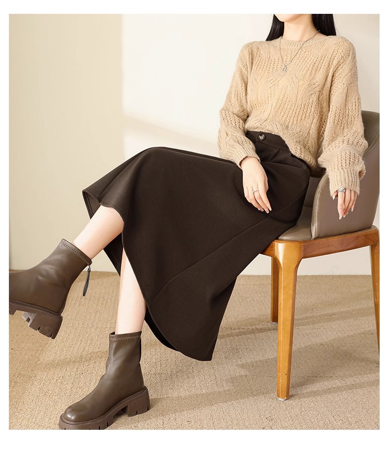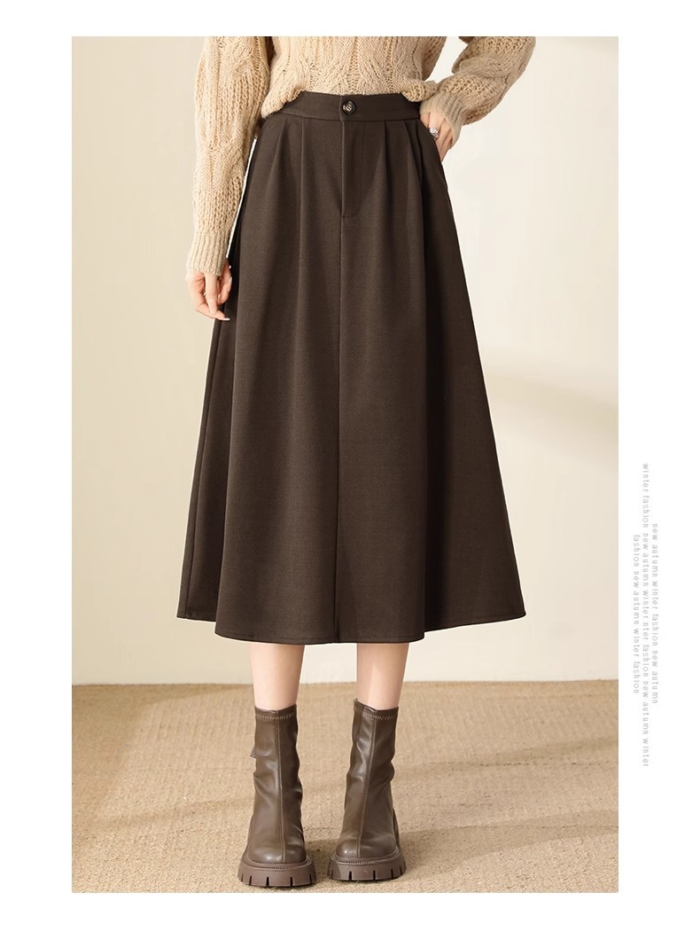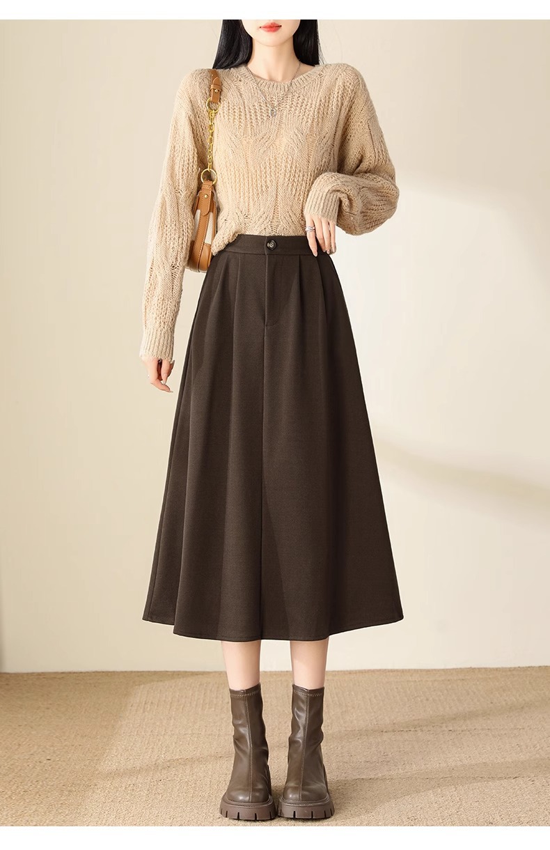 百媚生 高腰咖色伞裙半身裙女秋冬毛呢a字裙6615 商品图0