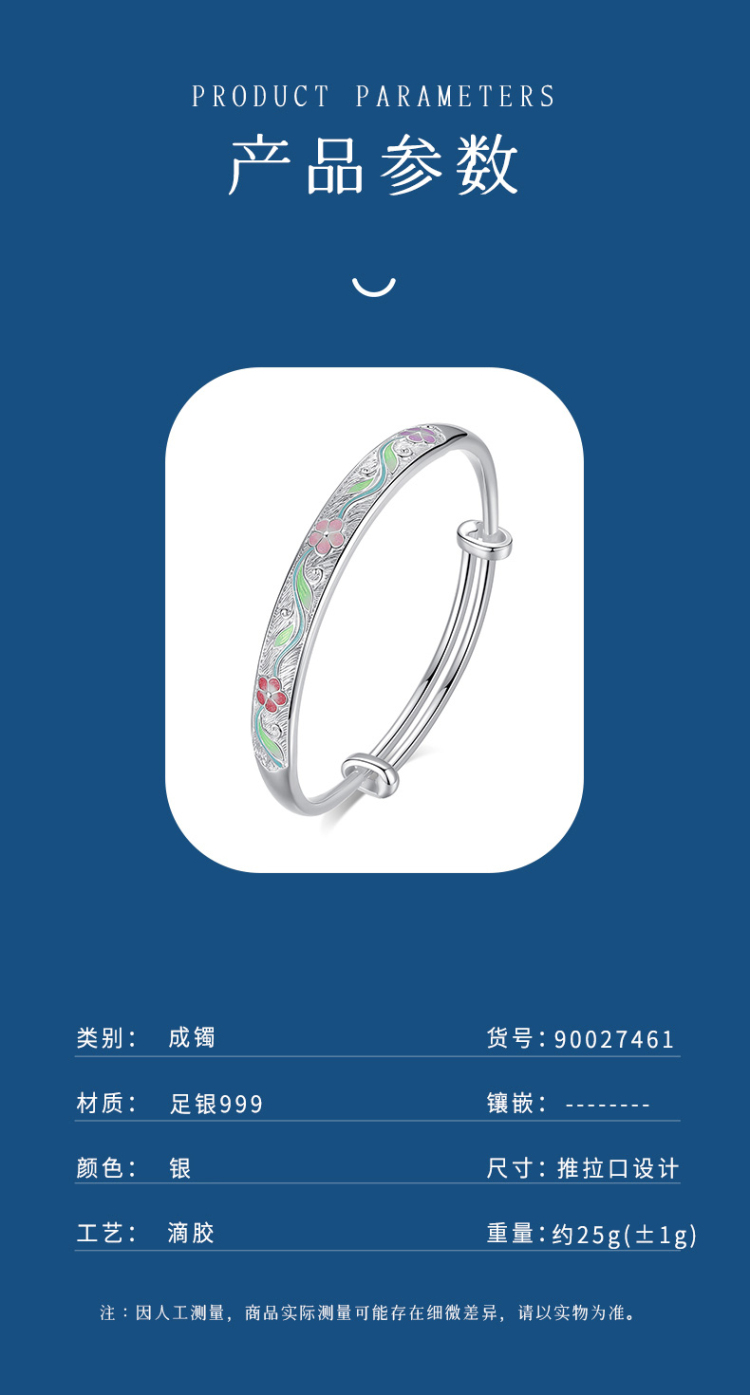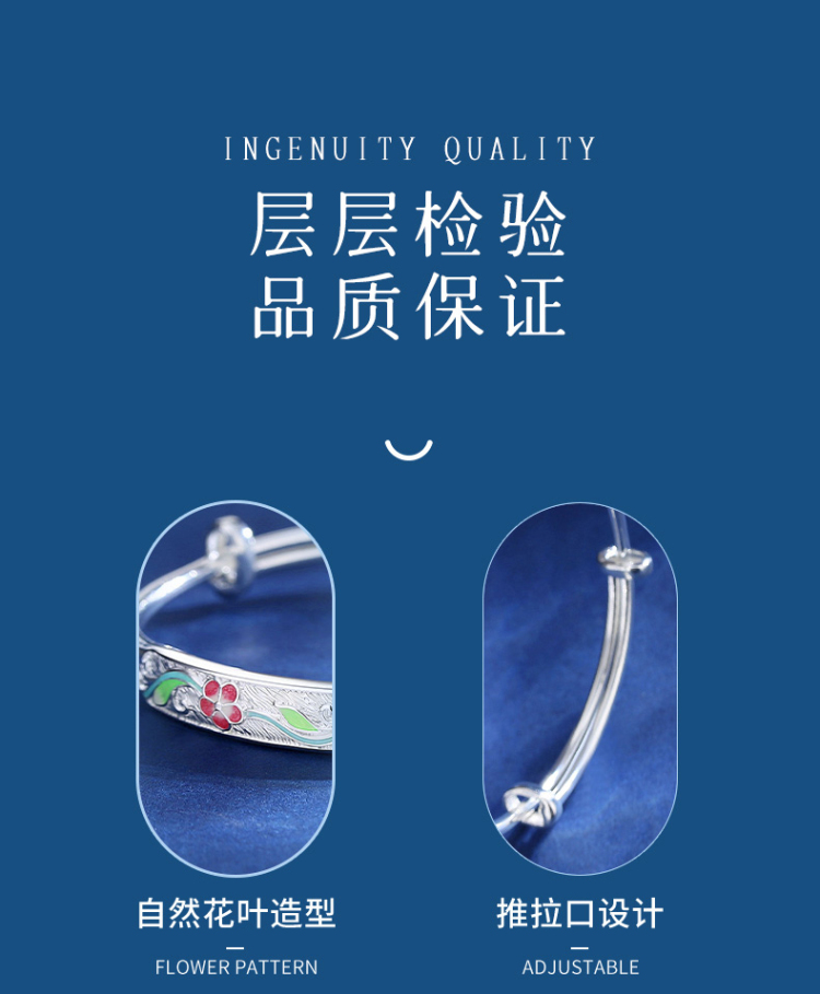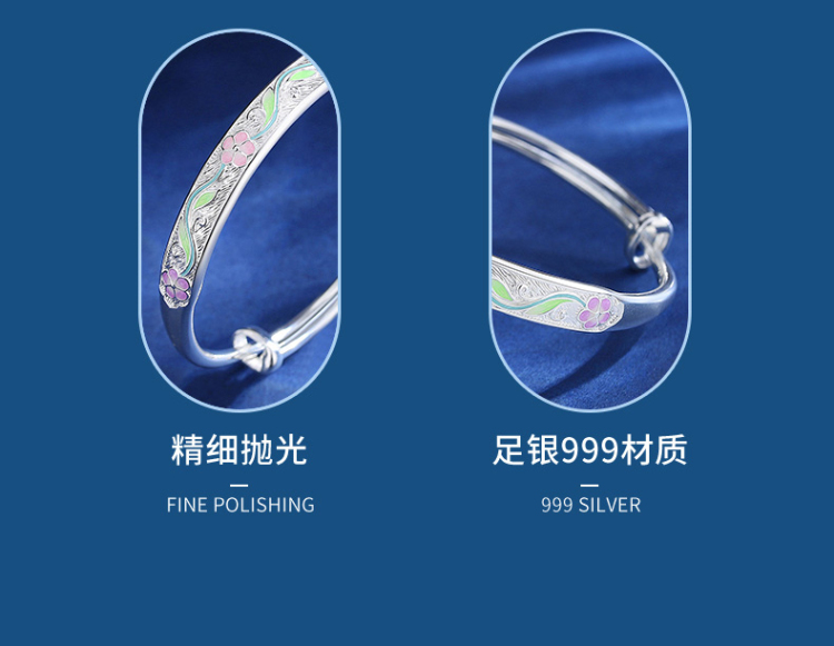 Winy999足银繁华似锦手镯送女友闺蜜节日生日礼物