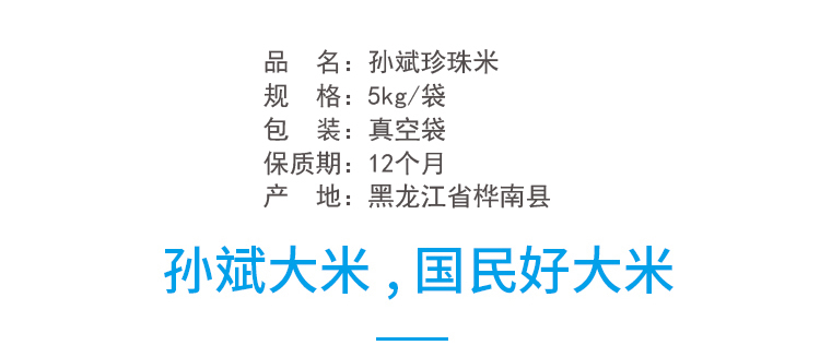 杞冠臻选 | 孙斌大米 东北特产珍珠米真空装5kg 一袋装