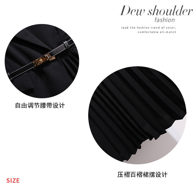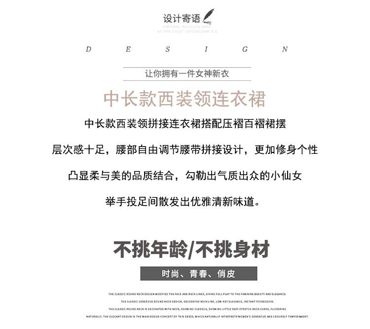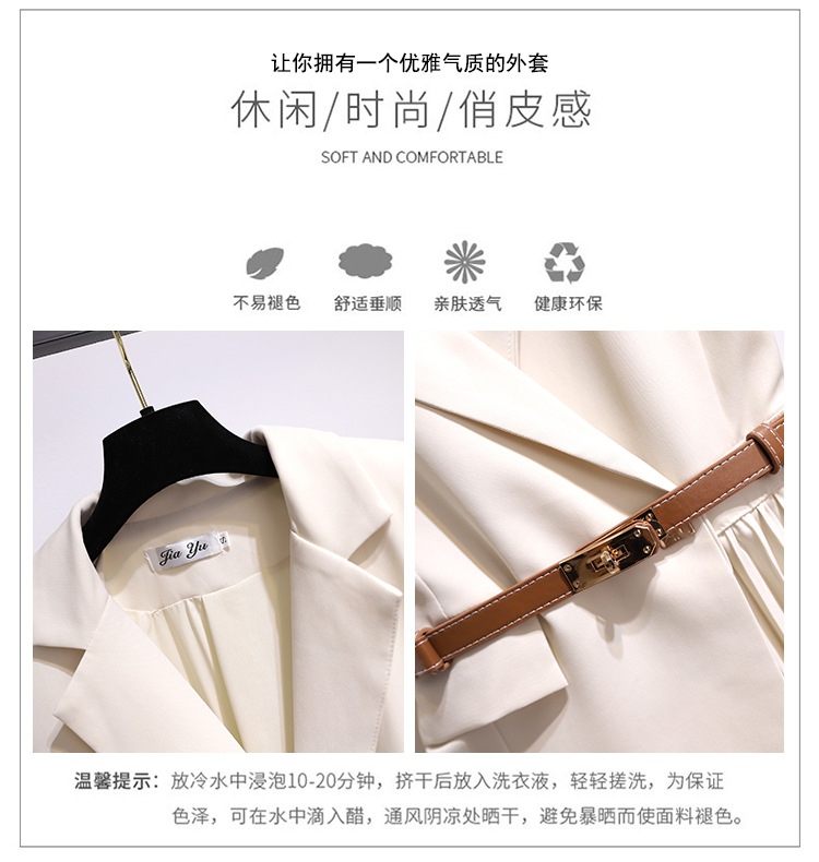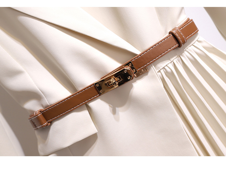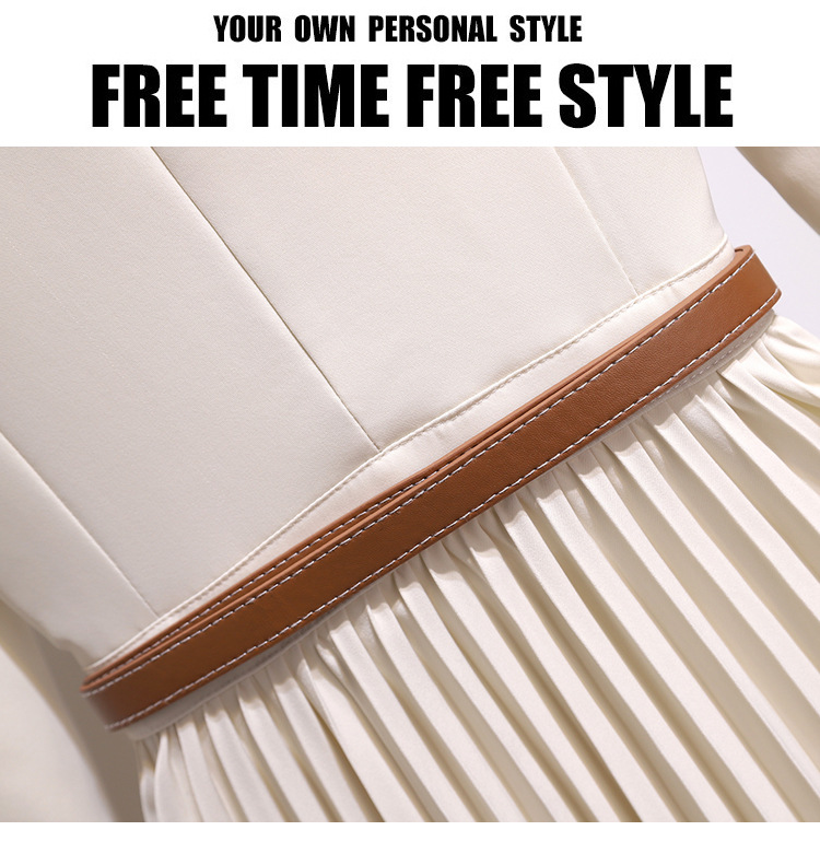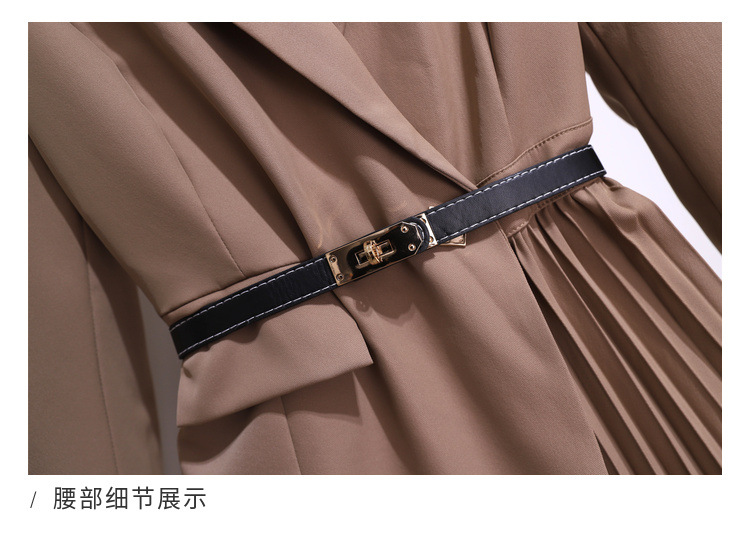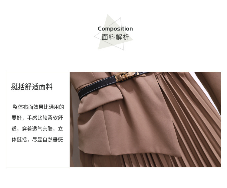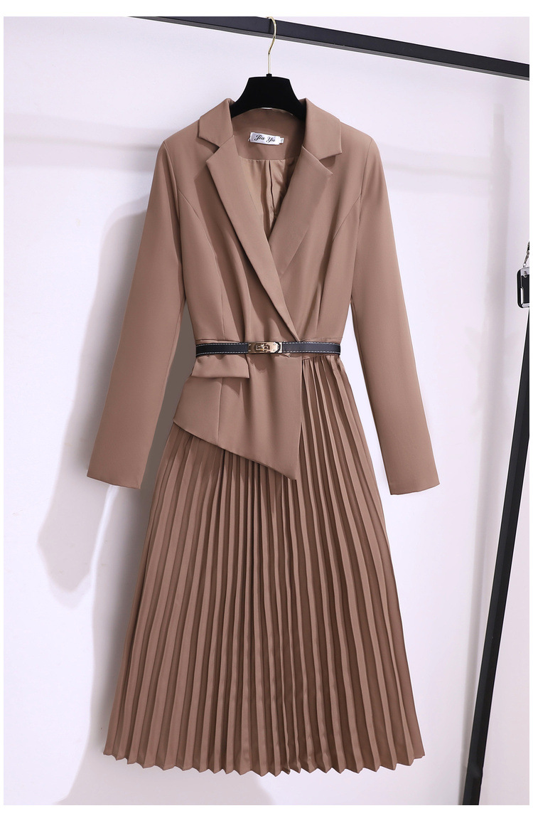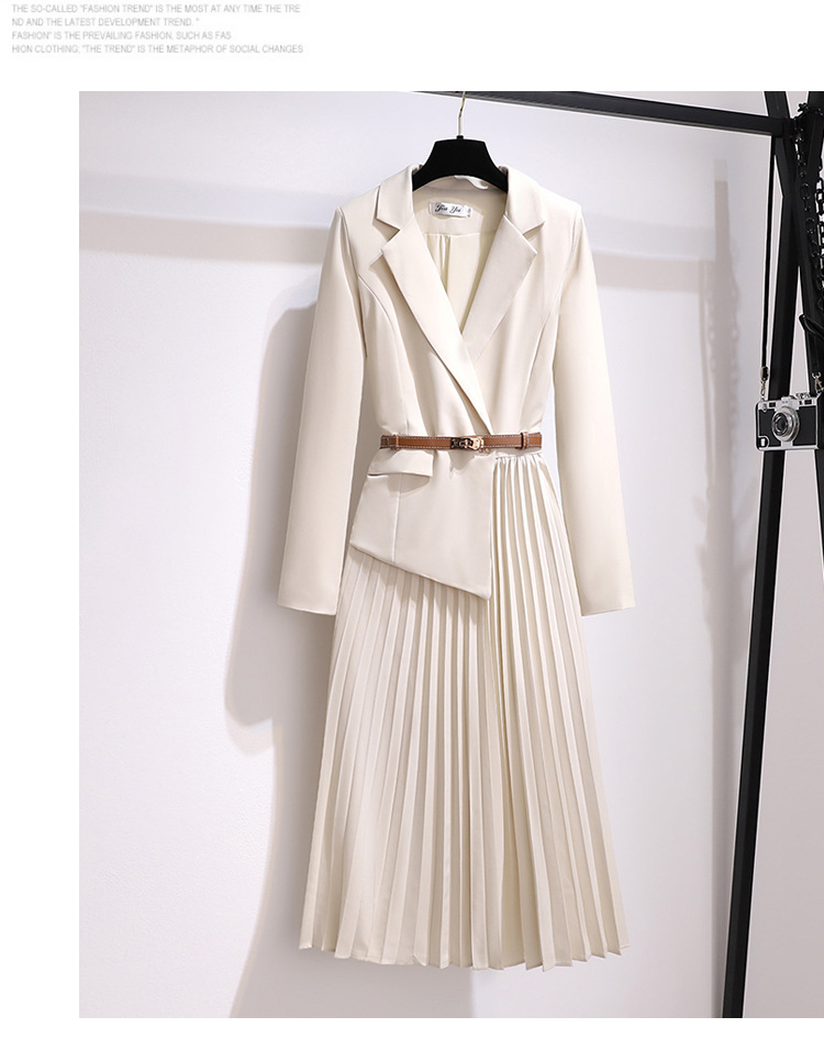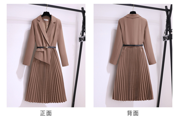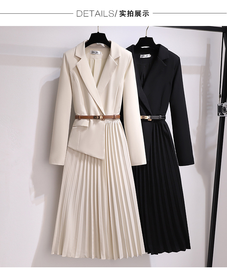丁摩 时尚新款西装外套高级感轻熟风假两件长袖百褶连衣裙子5ZF-1816