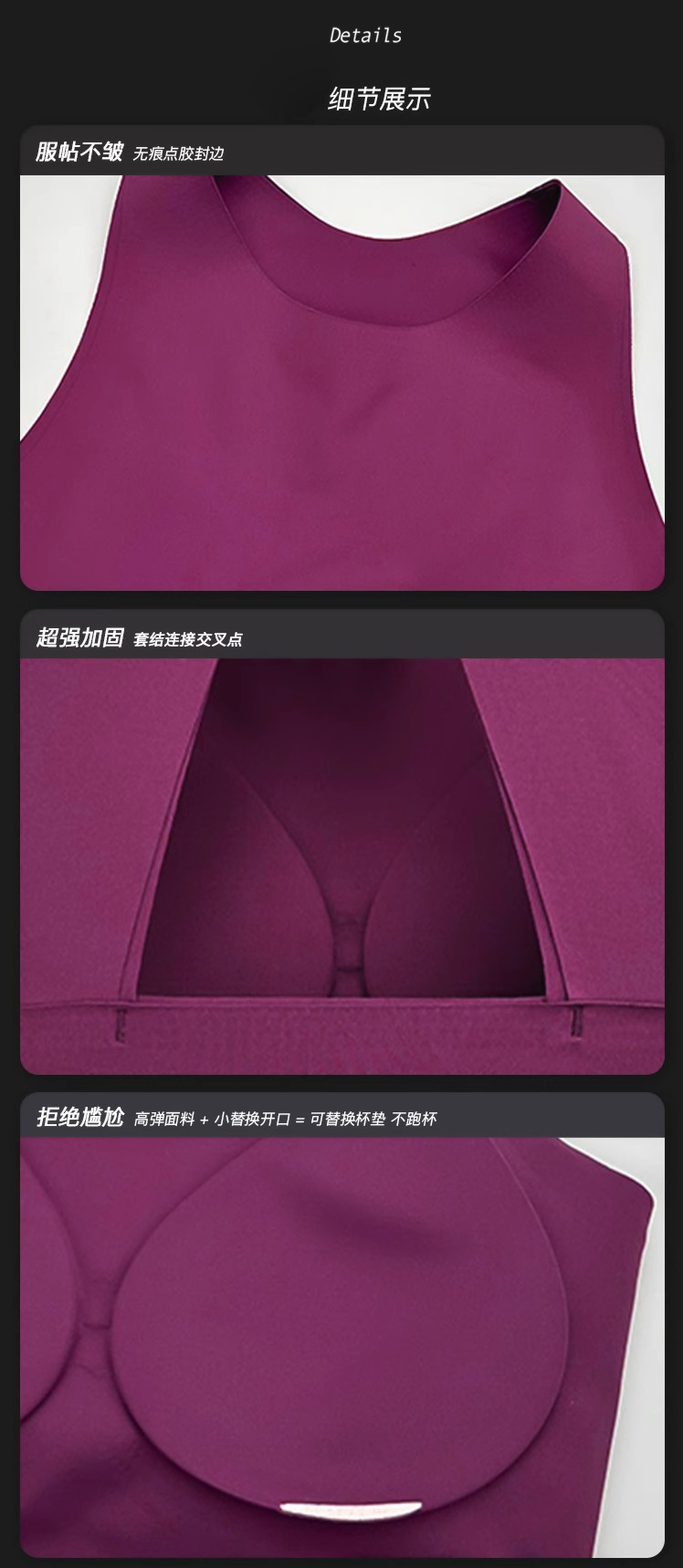 跃牌【周游世界系列】秋冬新款运动内衣晓星氨纶一片式粘合点胶高强防震健身服女子 BR1590