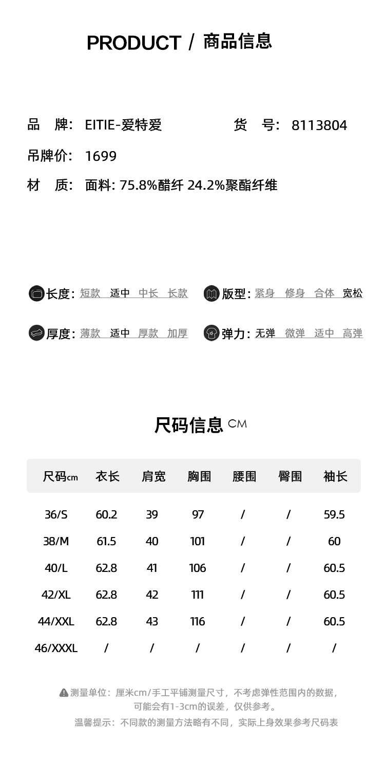 EITIE爱特爱气质通勤直筒显瘦白色小上衣春季新款8113804