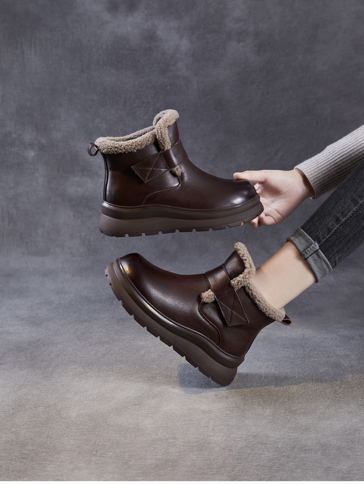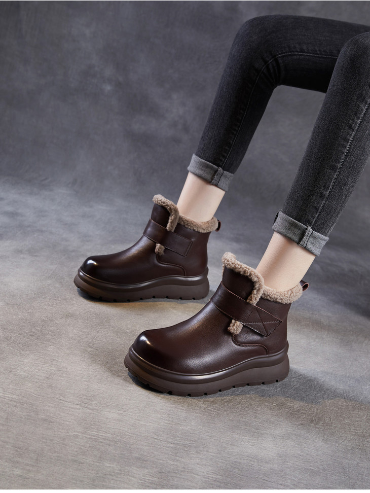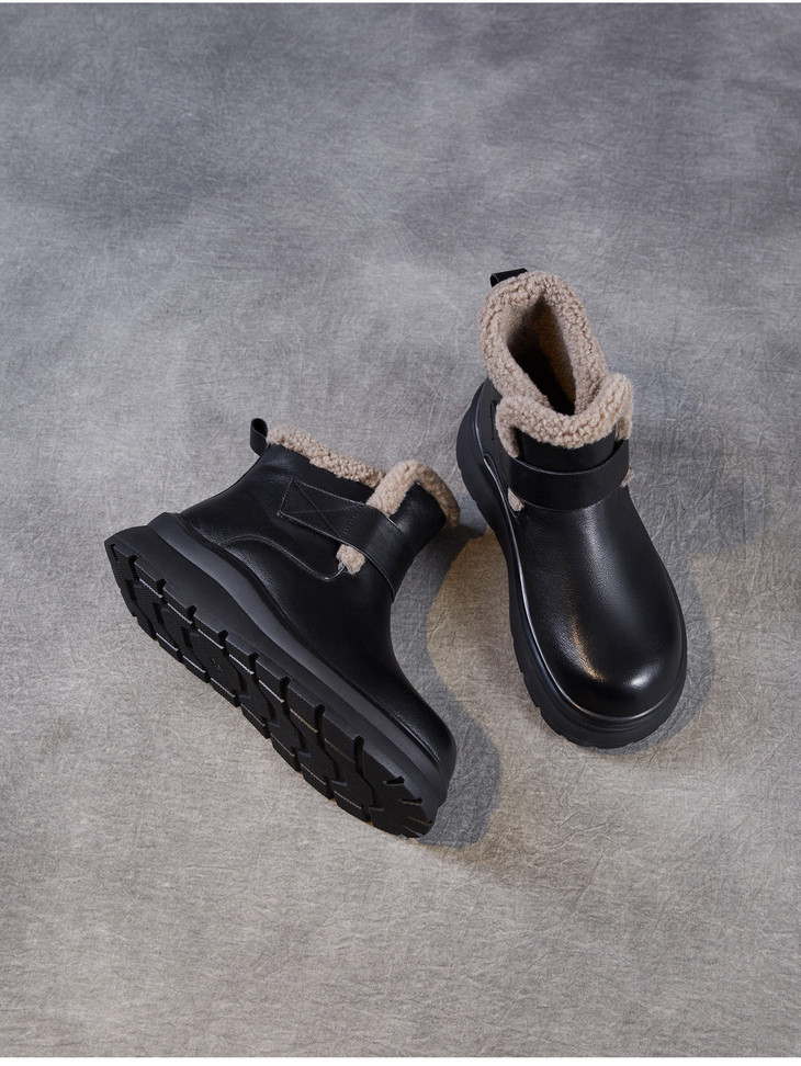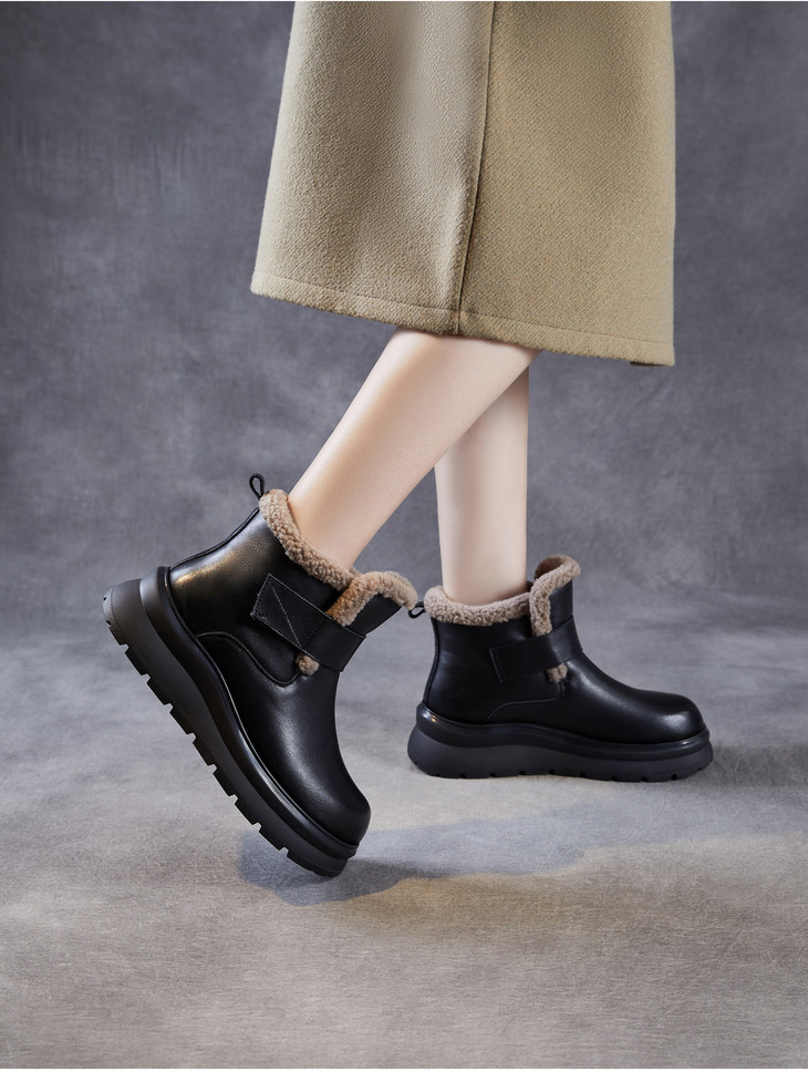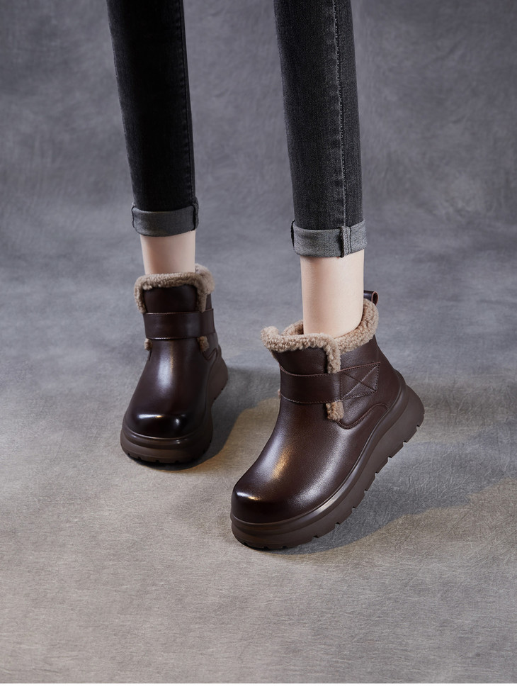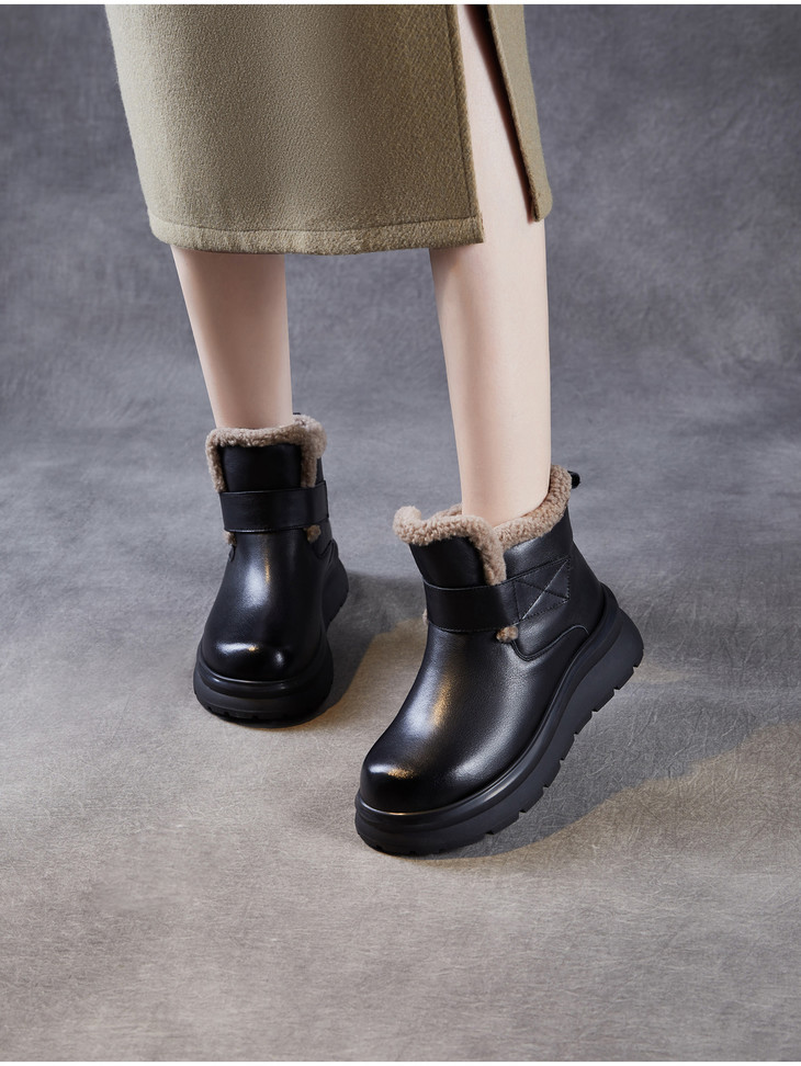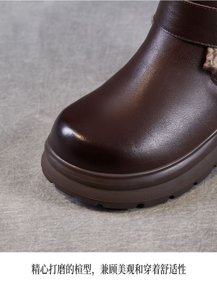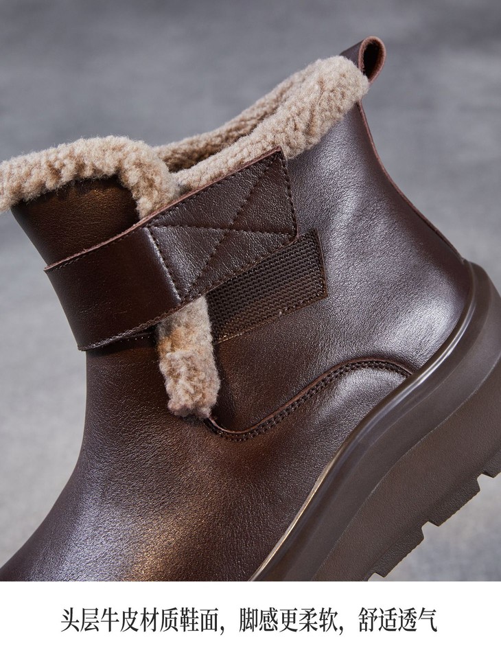 头层牛皮女鞋加绒保暖雪地靴,防滑舒适真皮东北棉鞋ZM258763