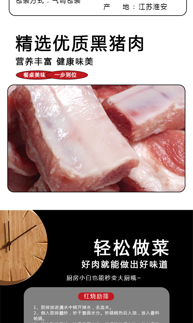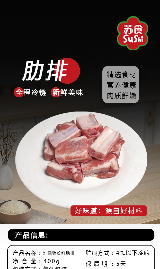 【南京提货券300-500】苏食淮黑猪肋排2000g*1袋