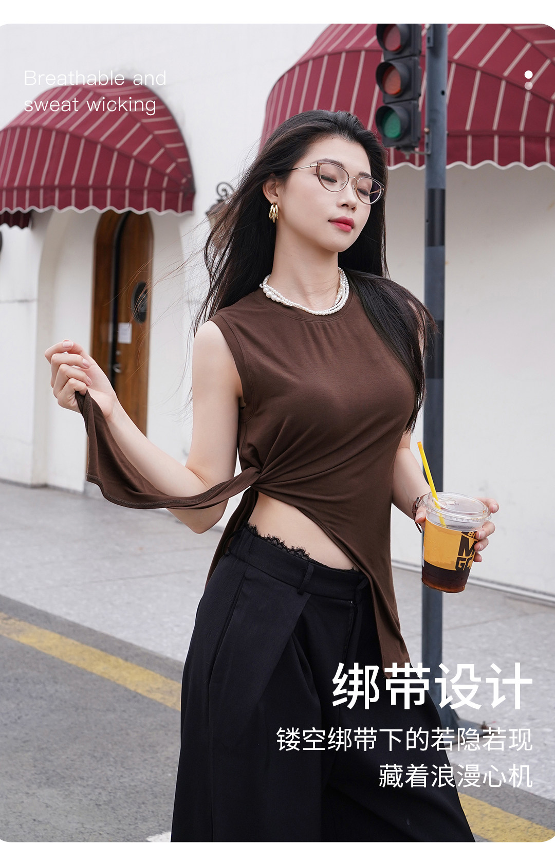 跃牌【欲动春风】系列 莫代尔瑜伽服运动罩衫宽松凉感透气无袖上衣绑带休闲背心DUOK2512