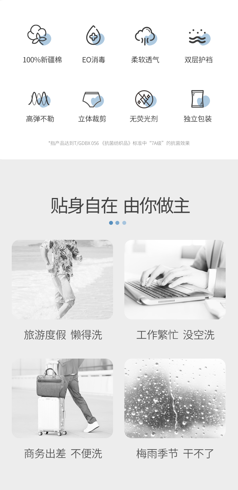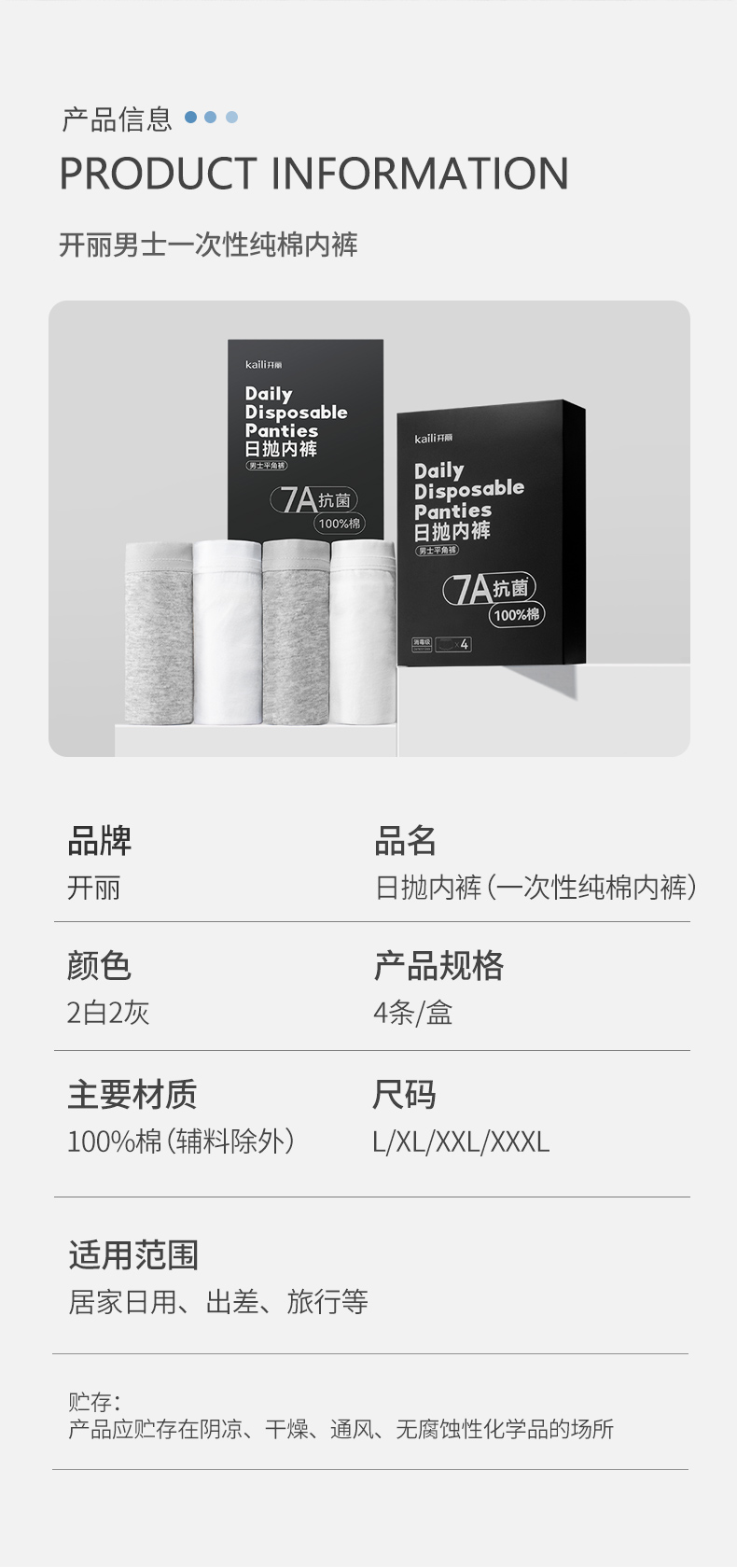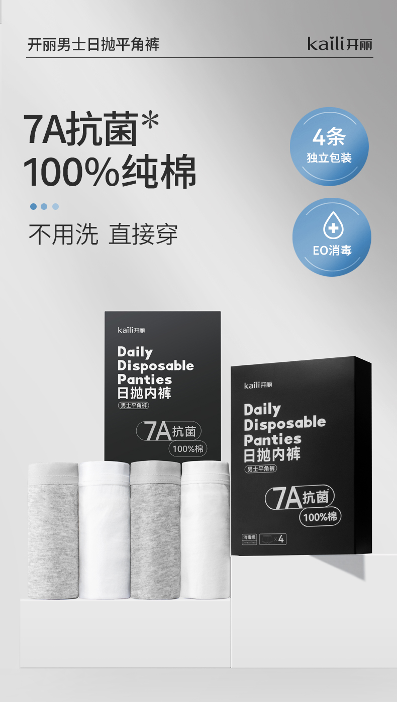 4条 | 男性平角裤一次性纯棉内裤7A抗菌100%棉【两件立减6元】